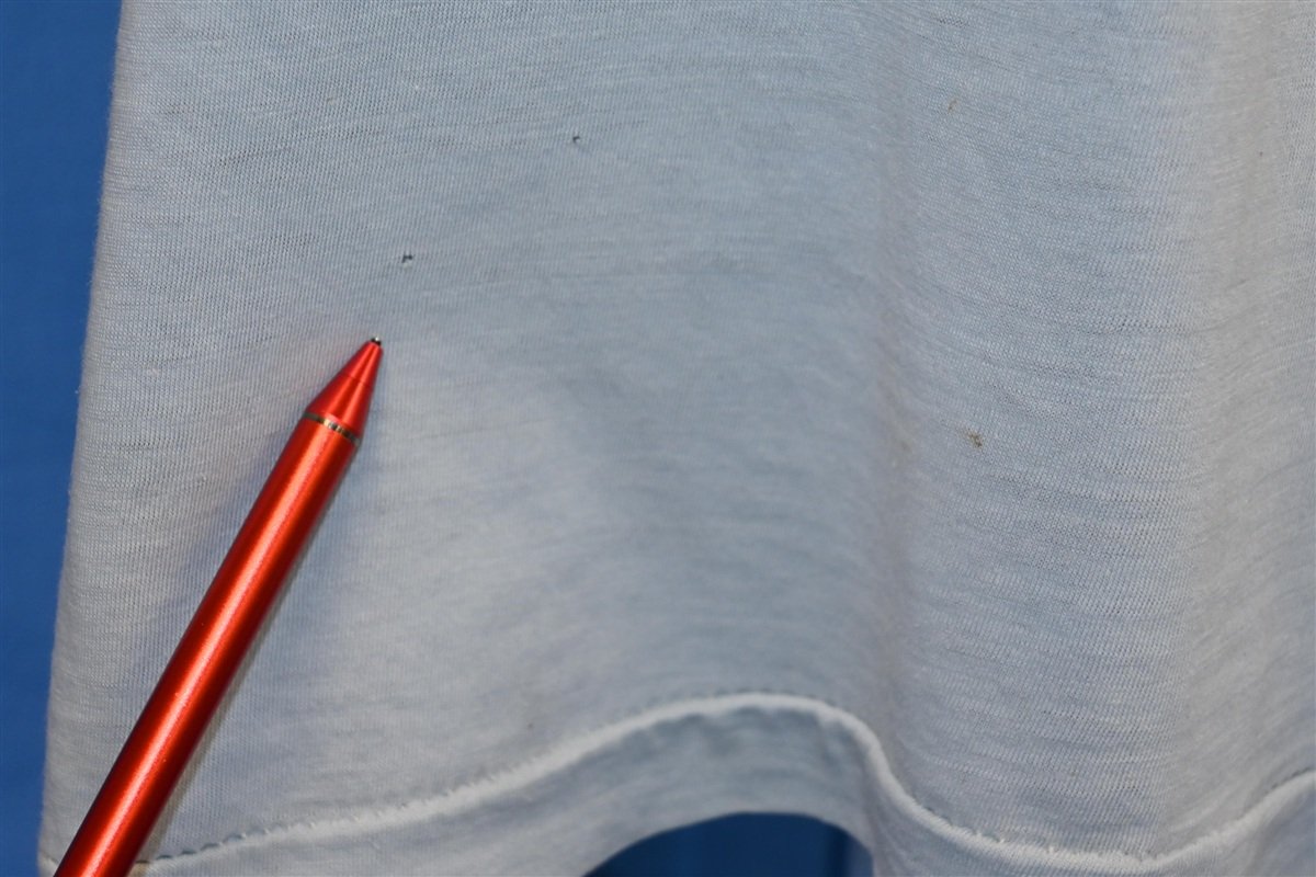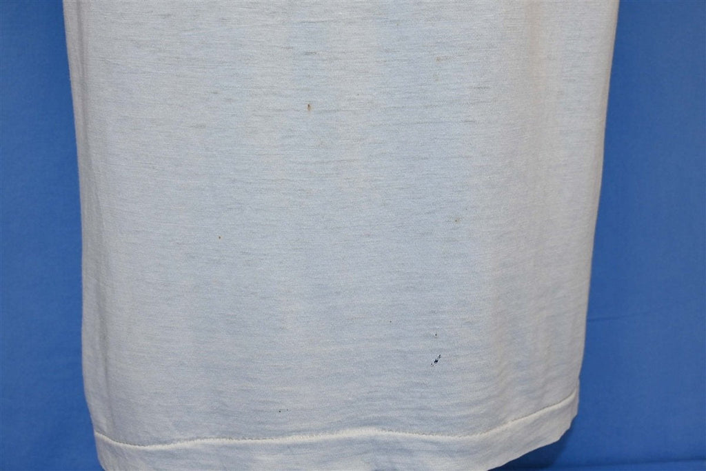 Fits like a modern unisex adult medium. This shirt is soft and thin with small holes and spots, see pics.
