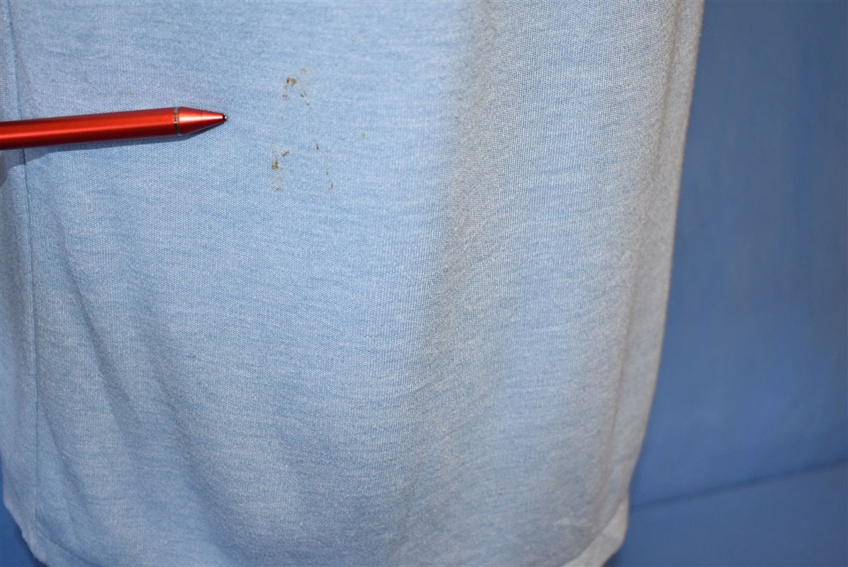 Fits like a modern unisex adult medium. There are small spots on the front and back, see pics.