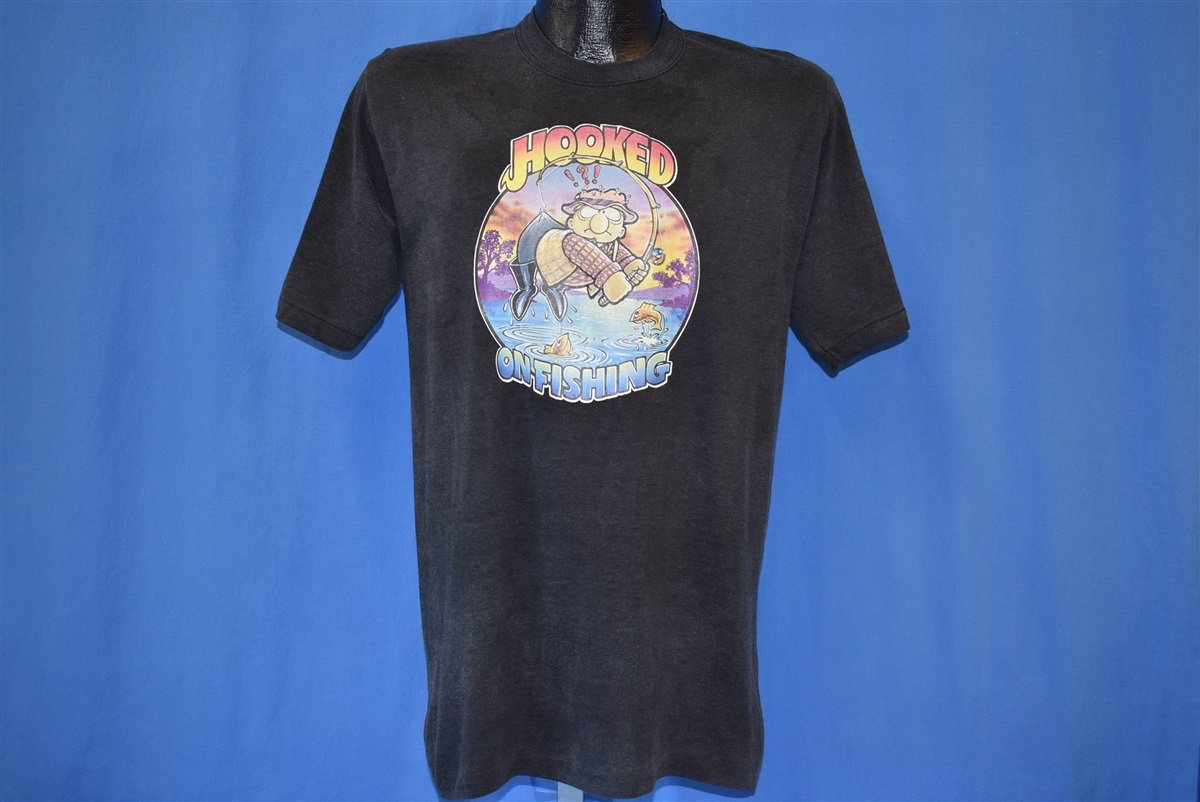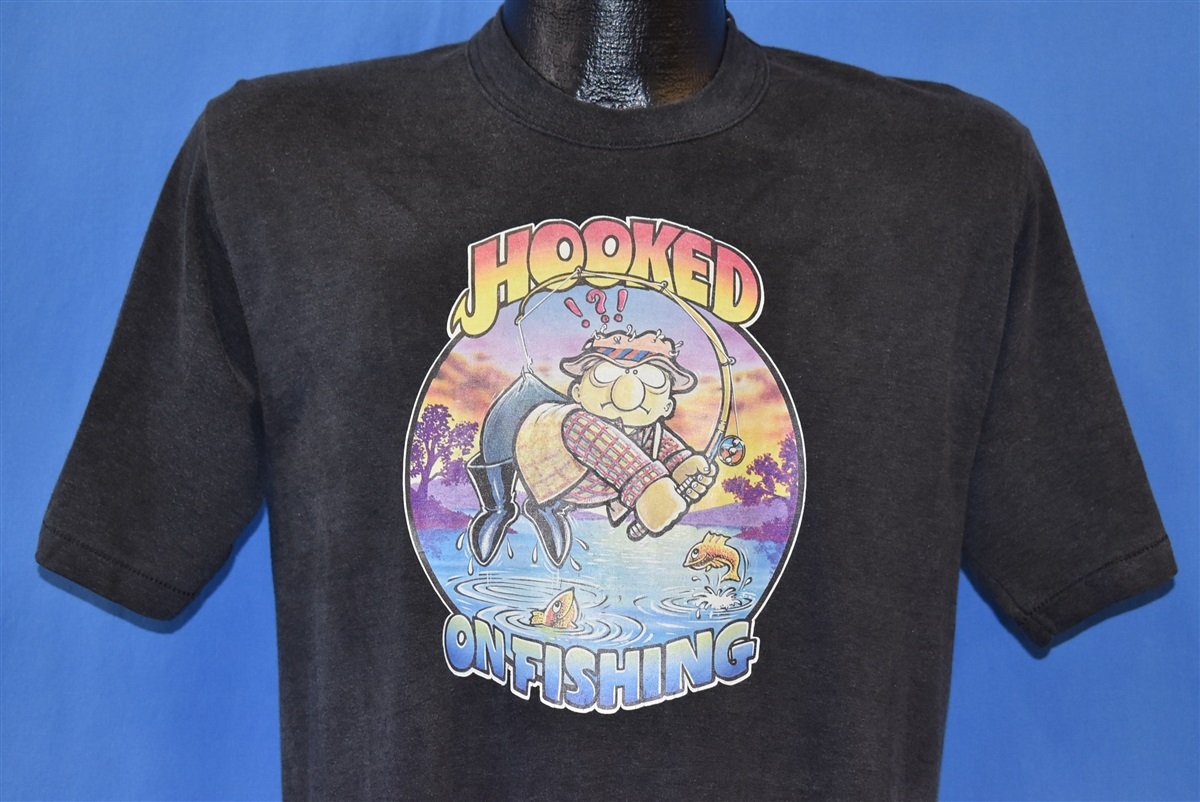 80s Hooked On Fishing Iron On Funny t-shirt Medium
