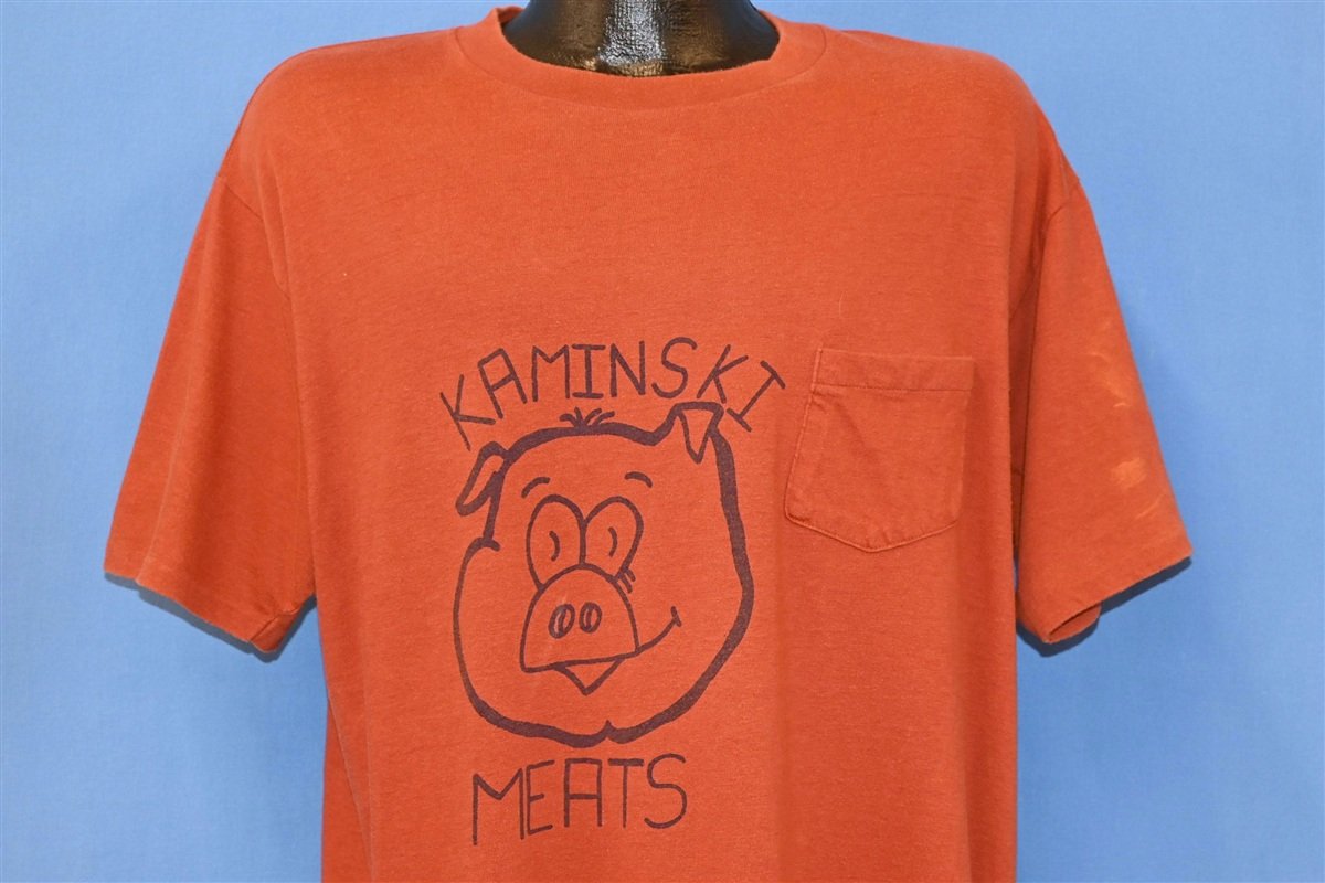 80s Kaminski Meats Pig Pork Products Pocket t-shirt Extra Large