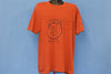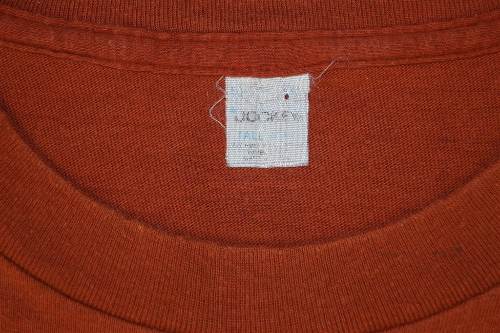 This cool rusty red pocket tee promotes Kaminski Meats. The business was founded all the way back in 1960 by Henry Kaminski, and since its inception its remained a family-run venture. Based out of Chicago, Kaminski Meats provides quality pork products to businesses across the nation. They offer top quality cuts of pork and specialize in meats designed for salami, gabagool, and sausage.