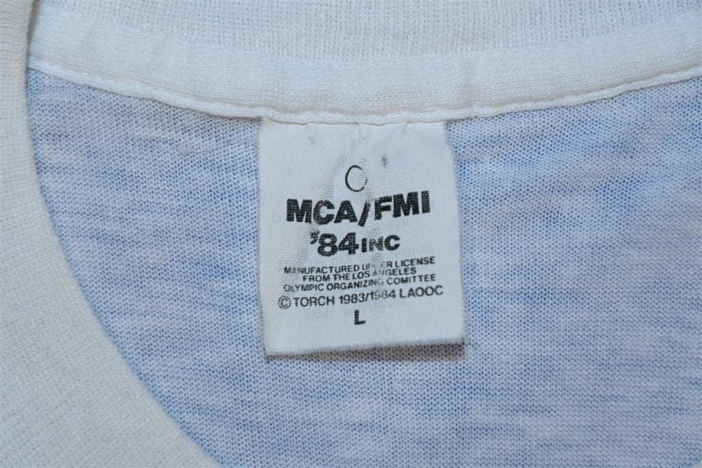 This sweet vintage shirt celebrates the 1984 Summer Olympic Games, which were held in Los Angeles. Despite a boycott in retaliation to the American-led 1980 Summer Olympic boycott, the '84 games saw a record-breaking number of nations competing with 140 National Olympic Committees in attendance.