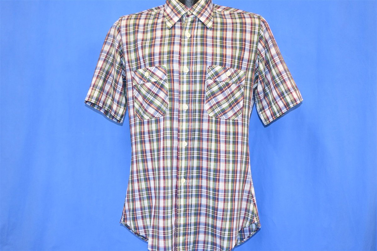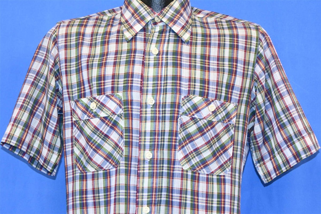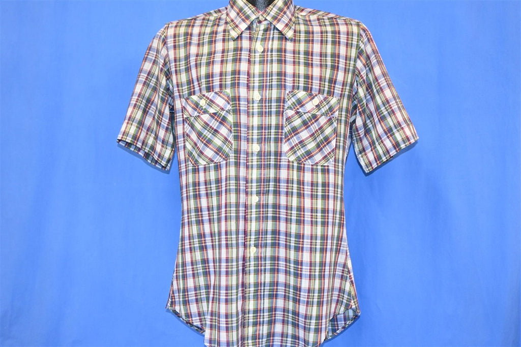 80s Levi's Green Red Plaid Tapered Button Down Shirt Medium