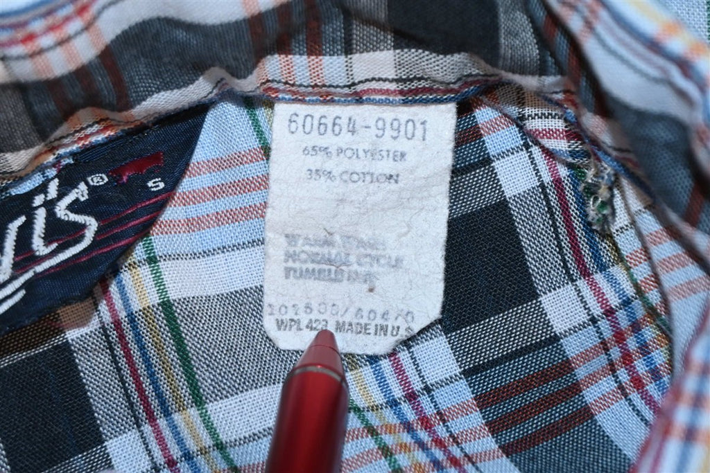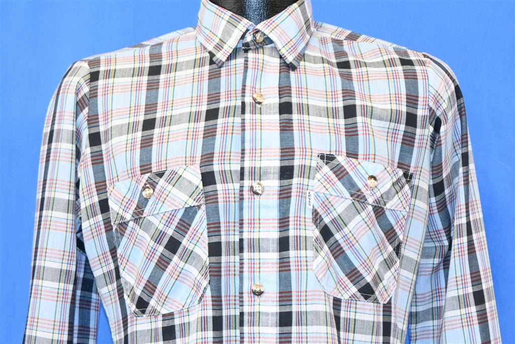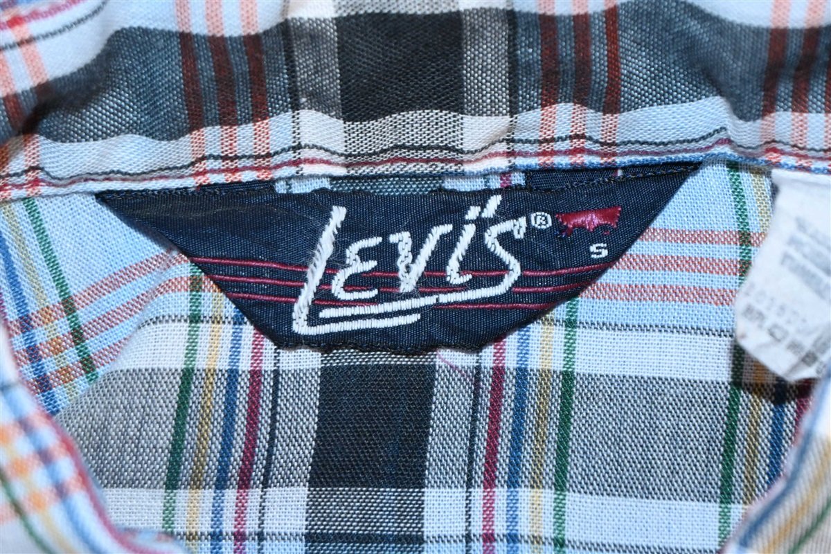 80s Levi's Multi-Colored Plaid Tapered Button Down Shirt Small