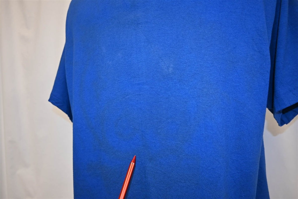 Fits like a modern unisex adult extra large. This shirt is deadstock, unworn. There is screen burn and discoloration throughout, see pics.