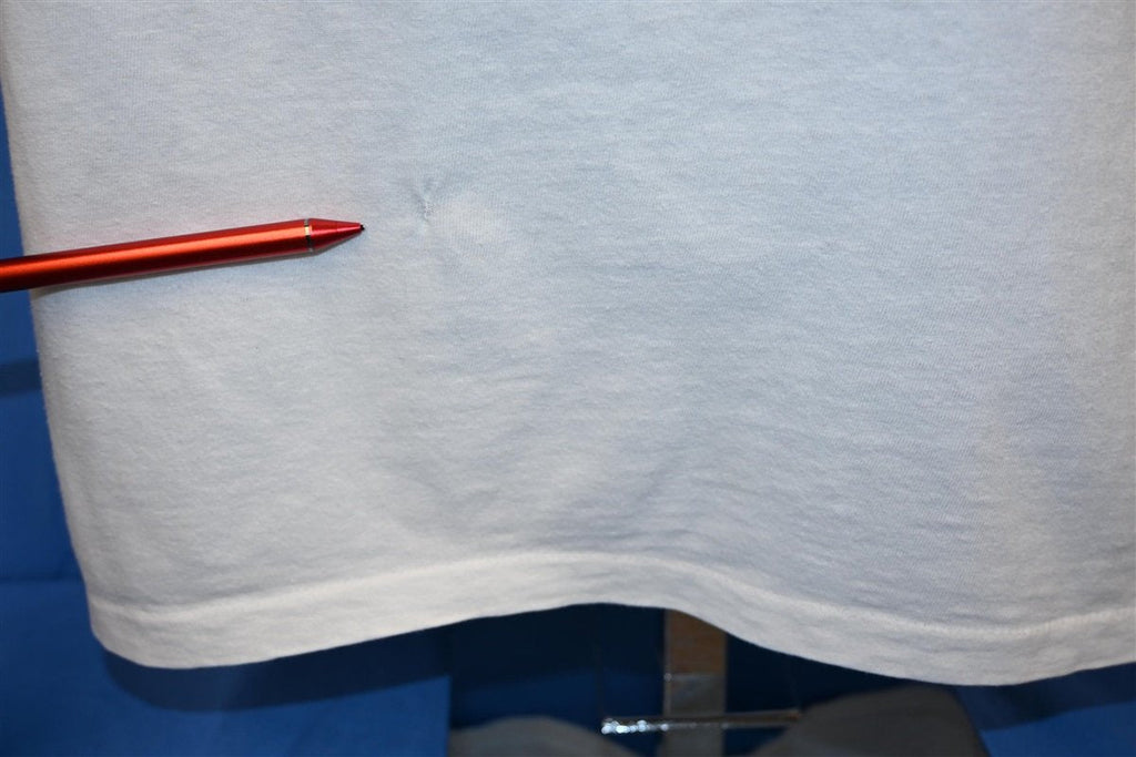 This awesome double-sided tee is a rare find from the world of professional skateboarding. This t-shirt celebrates Kevin Harris, a skater from Vancouver, Canada who was a member of the legendary skateboarding team, the Bones Brigade. The Bones Brigade was put together by George Powell and Stacy Peralta's company Powell Peralta, and it was known for having some of the most notorious names in the sport. Other Bones Brigade members have included Steve Caballero, Tommy Guerroro, Mike McGill, Rodney Mullen, and of course arguably the most famous skateboarder of all time, Tony Hawk.