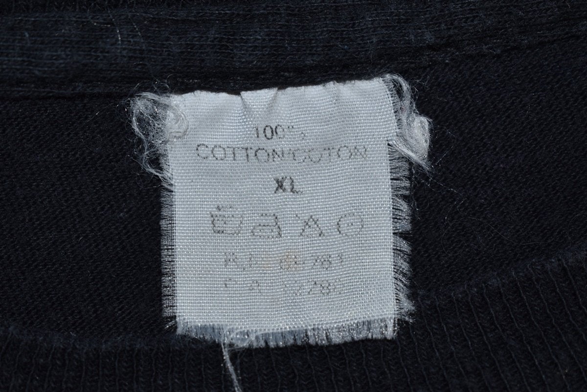 This double-sided concert t-shirt is for the English musician Robert Plant, who is best known for being the lead singer of the iconic rock band Led Zeppelin. This shirt is from Plant's Non Stop Go World Tour from back in 1988. The concert tour was launched the same year as Plant's fourth solo album Now and Zen, which made it into the top ten of both the US and UK charts. Two of the songs "Heaven Knows and "Tall Cool One" featured Led Zeppelin guitarist Jimmy Page, who Plant often collaborated with even after Led Zeppelin disbanded in 1980.