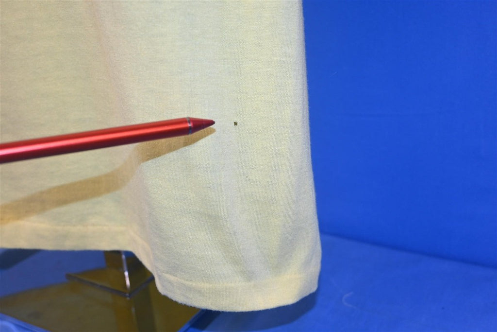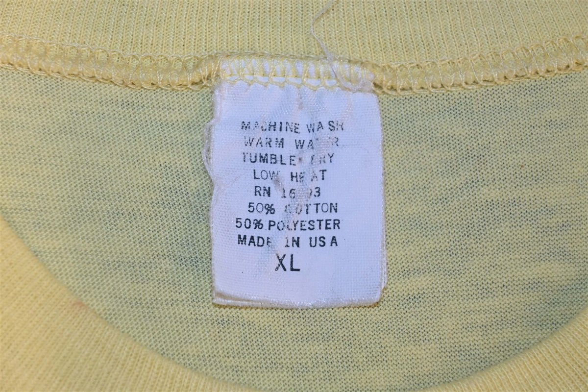 This sweet shirt was made in the 80s for the Sea Turtle Rescue Fund. This fund was created by the Center for Environmental Education, after they noticed that the lights from Florida beach front properties were having a negative affect on the local sea turtle population. The lights were confusing newly hatched turtles, and making it difficult for the babies to safely find their way to the ocean. Thus the Sea Turtle Rescue Fund was launched to help spread awareness on the issue. This tee encourages you to "stick your neck out for a turtle".
