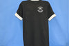 This unique tee was made for a group that called themselves the Cellar Dwellars. The back of this tee has a graphic of a paratrooping armadillo, drinking from a keg of beer. The details about this group are a little mysterious but it was likely some community social organization. This tee has roll up sleeves and on the left sleeve the name "Mrs. Jiffy", is embroidered.