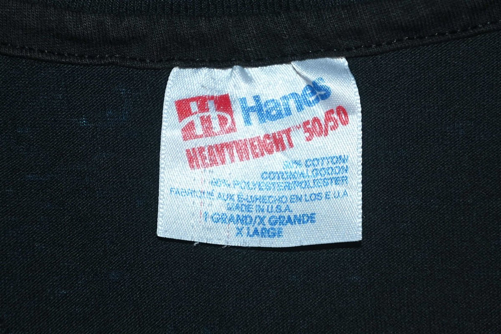 This vintage promotional t-shirt was made for the radio station, K-NUZ 1230 AM. The station is based in Houston, Texas and they operated under the KNUZ call sign from the late 40s, all the way up until 1997. This shirt was made in the 90s, when the station hosted a news and opinion format that they called K-News.