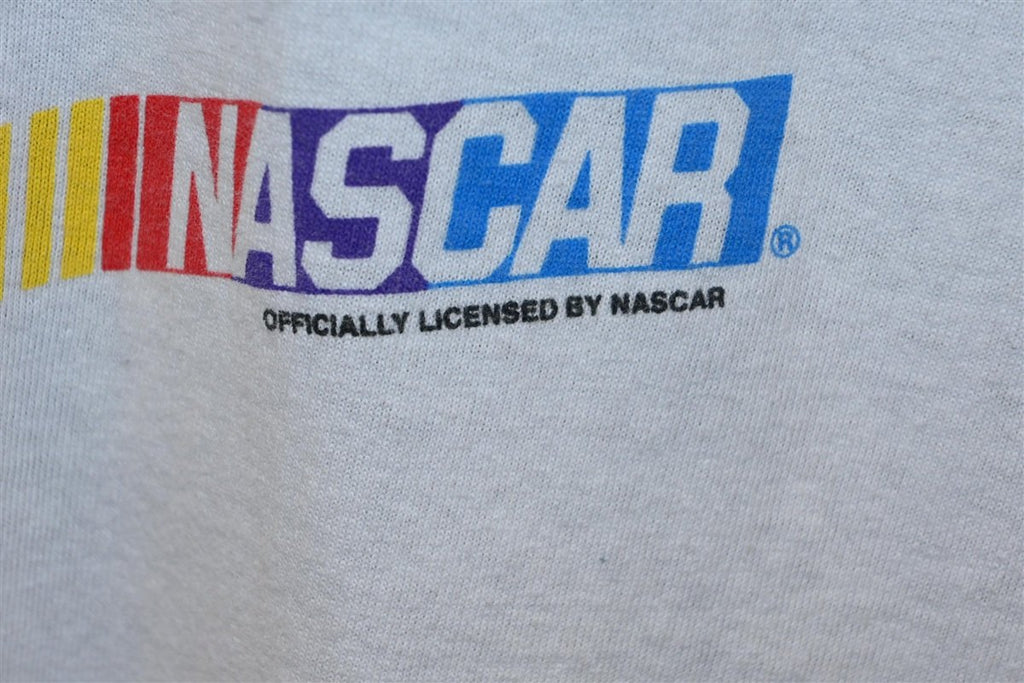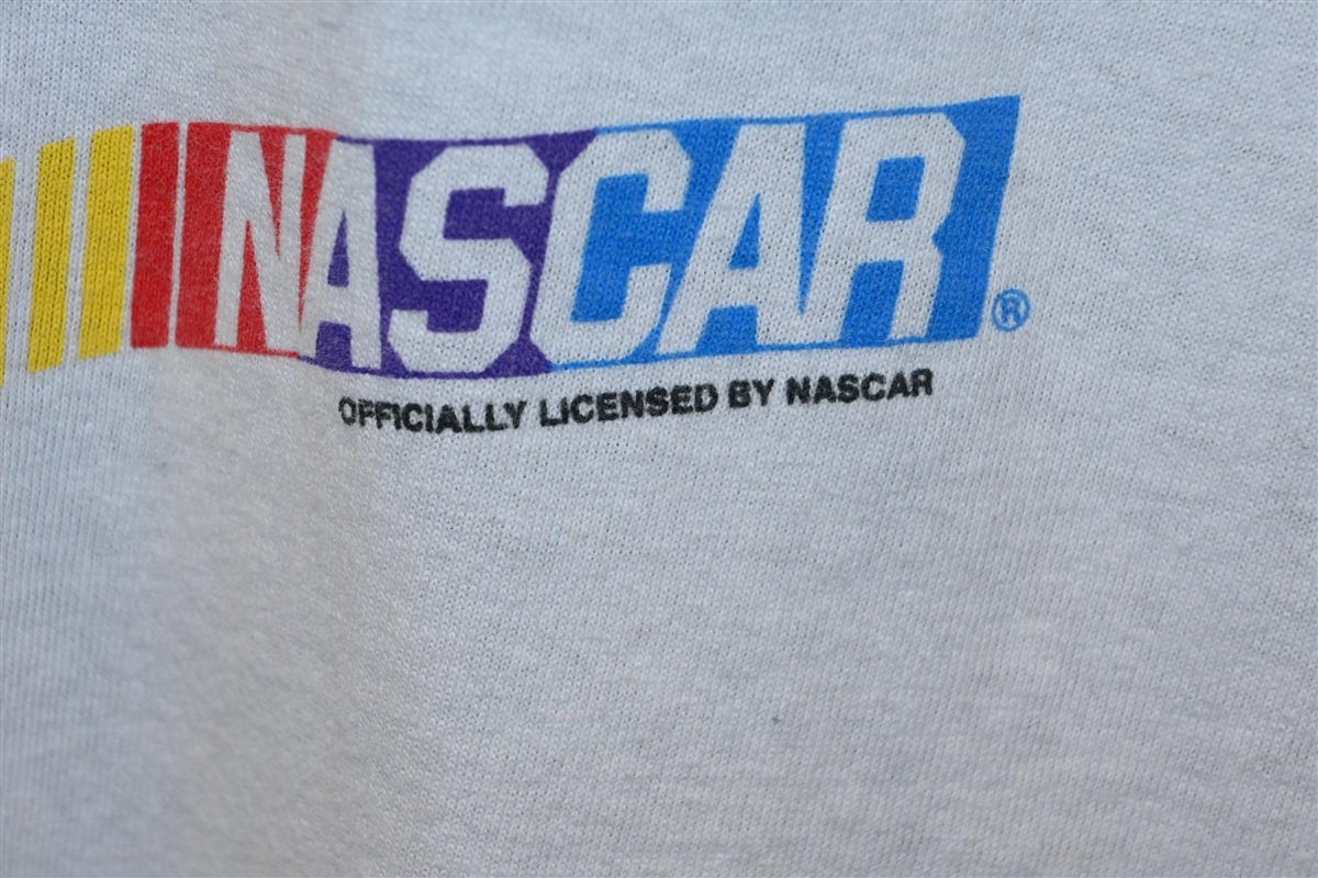 This shirt combines two iconic staples of 90s pop culture, NASCAR racing and the Looney Tunes. This shirt shows off the Looney Tunes pit crew, featuring Taz the Tasmanian devil, Yosemite Sam, and Wile E. Coyote and the Road Runner. During the 90s, both NASCAR and the Looney Tunes enjoyed a sudden surge in popularity, particularly with younger fans. This era saw a new generation being introduced to the classic Warner Bros. cartoons, thanks to Nickelodeon. Meanwhile, young hot talent like Jeff Gordon, Tony Stewart, and Jimmie Johnson, caught the attention of younger racing fans. This awesome shirt combines the two, to create an incredible piece of 90s nostalgia.