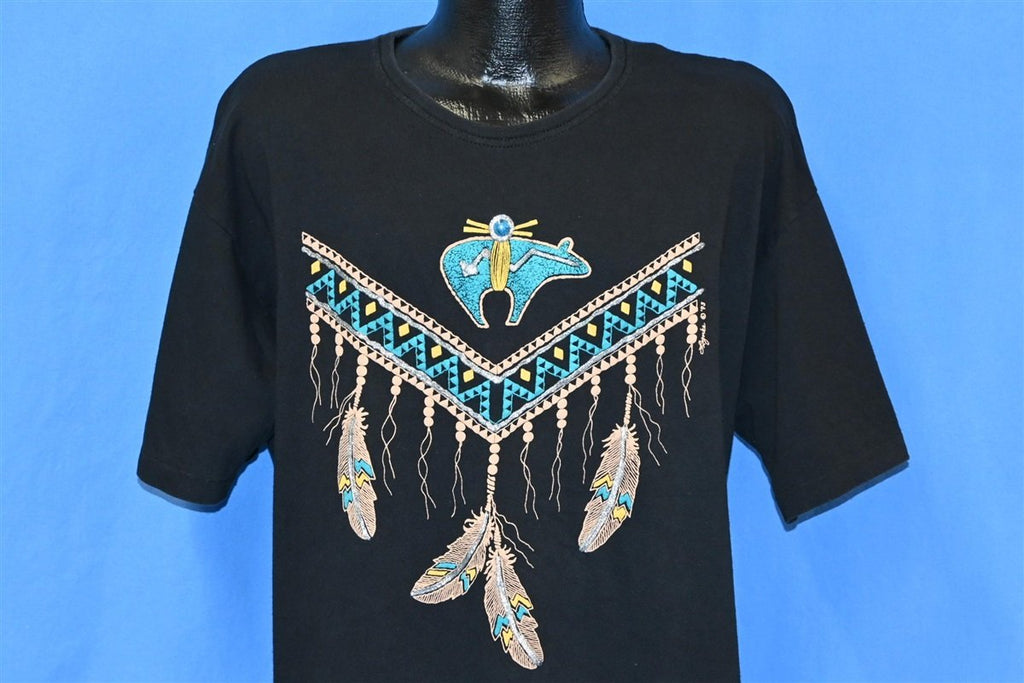 This great vintage tee features a Native American-inspired design with glitter and puffy paint graphics.
