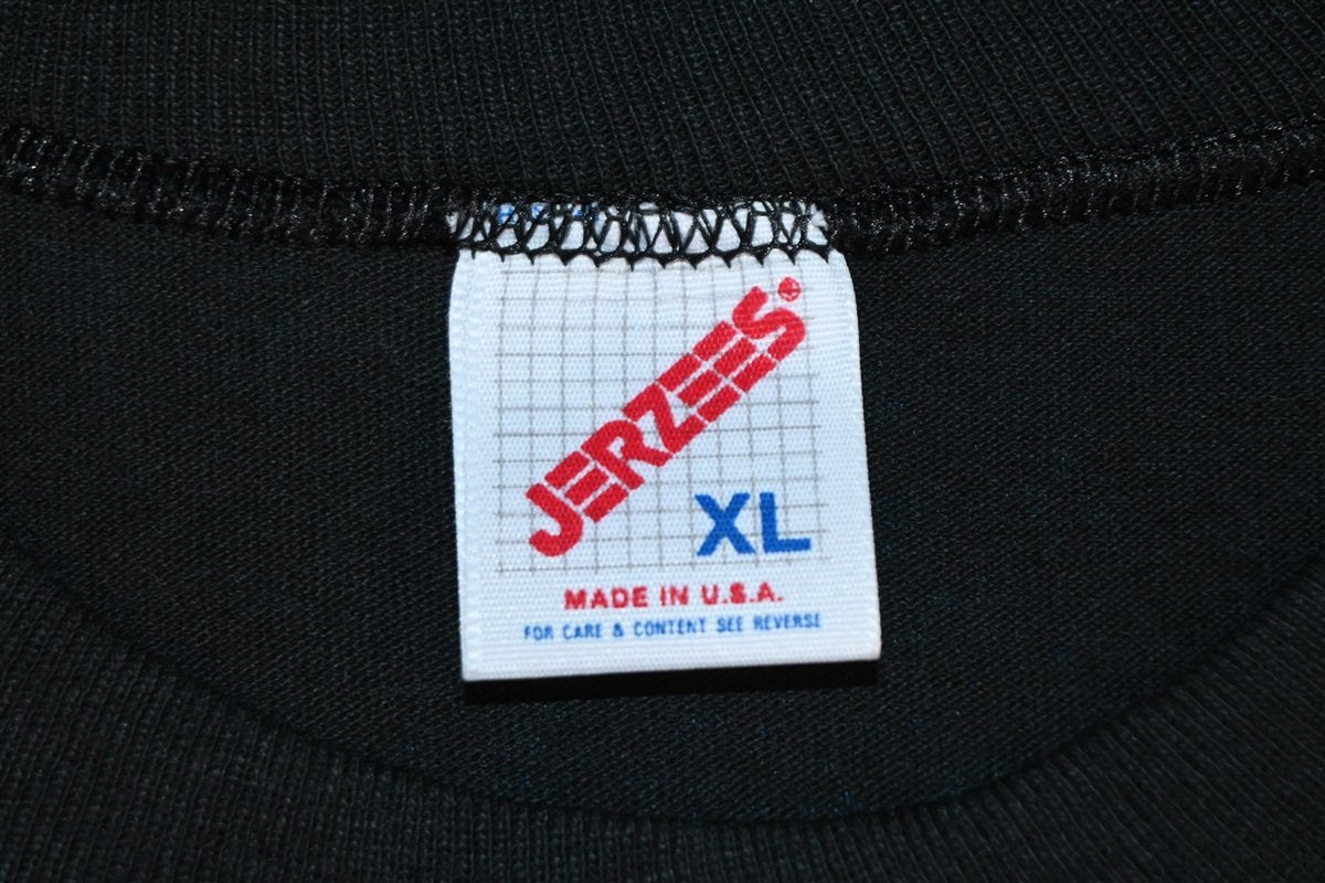 This sweet graphic tee remembers the 1994 Pennsylvania Ride for Freedom. The Ride for Freedom was an organized motorcycle ride put together by the Rolling Thunder. This organization was founded by Vietnam Veterans in the 80s who felt that the US government wasn't doing enough to repatriate missing soldiers. The main Ride for Freedom takes place annually on 4th of July weekend at the Vietnam Veterans Memorial Wall but this shirt was most likely made for a local Ride for Freedom in Pennsylvania.