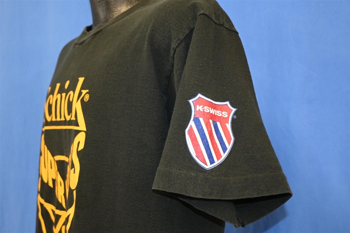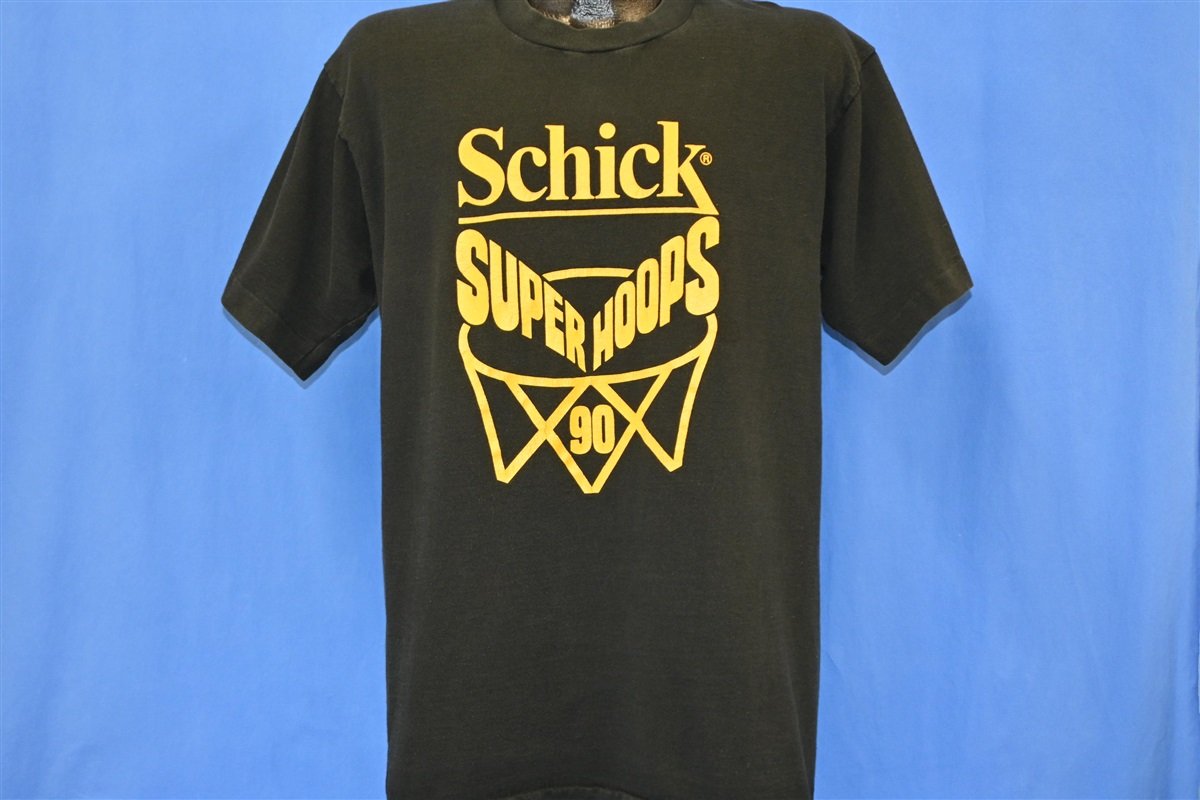 This special tee comes from the Schick Super Hoops 3-on-3 basketball tournament of 1990. These college level tournaments took place starting in 1984. By the end of the 90s more than 2.5 million students nationwide participated in the competition, with 200,000 students from 400 colleges participating annually.