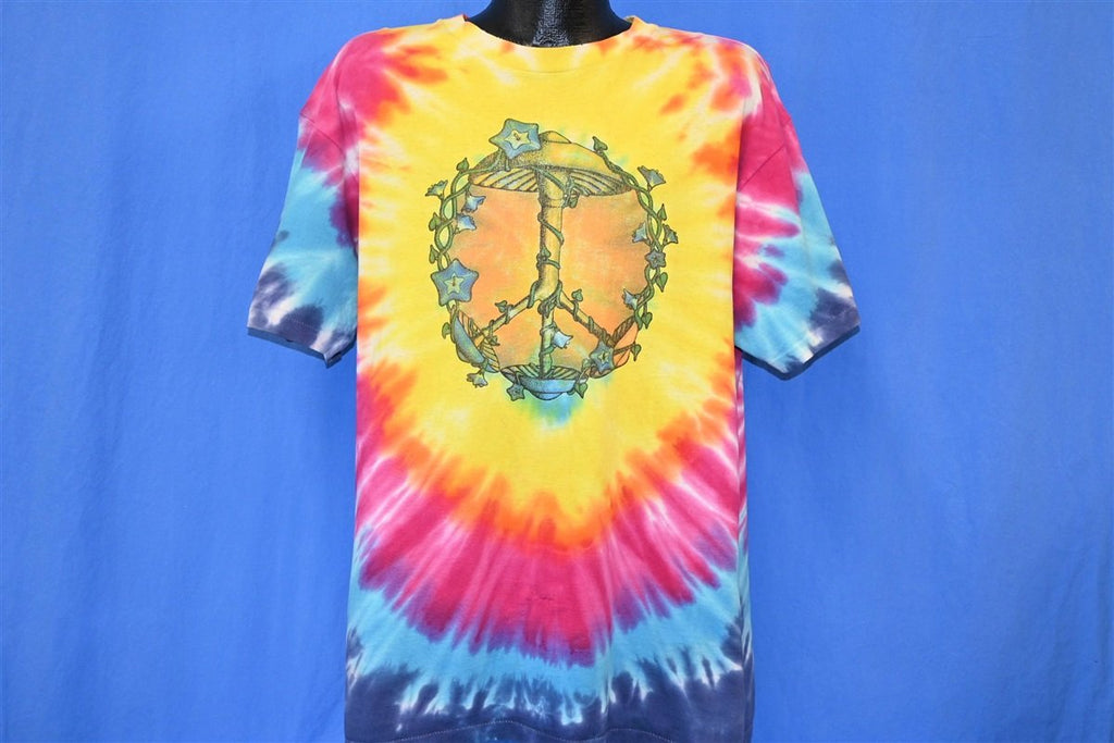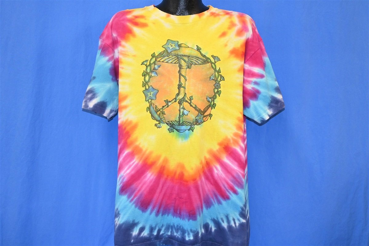 90s Tie Dye Peace Sign Mushroom Flowers t-shirt Extra Large