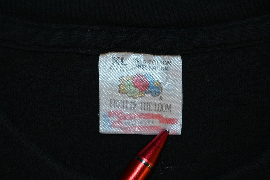 This shirt promotes The Nashville Network Motor Sports programming block. TNN was a cable TV network operating out of Tennessee that specialized in country music and southern culture programming. TNN Motor Sports was one of the network's original programs, airing in 1983 when the network first began. NASCAR races were the most prominently included races on the network but TNN also aired USAC sprint car series and NHRA drag racing, among others. The network was eventually rebranded as Spike TV, and then the Paramount Network.