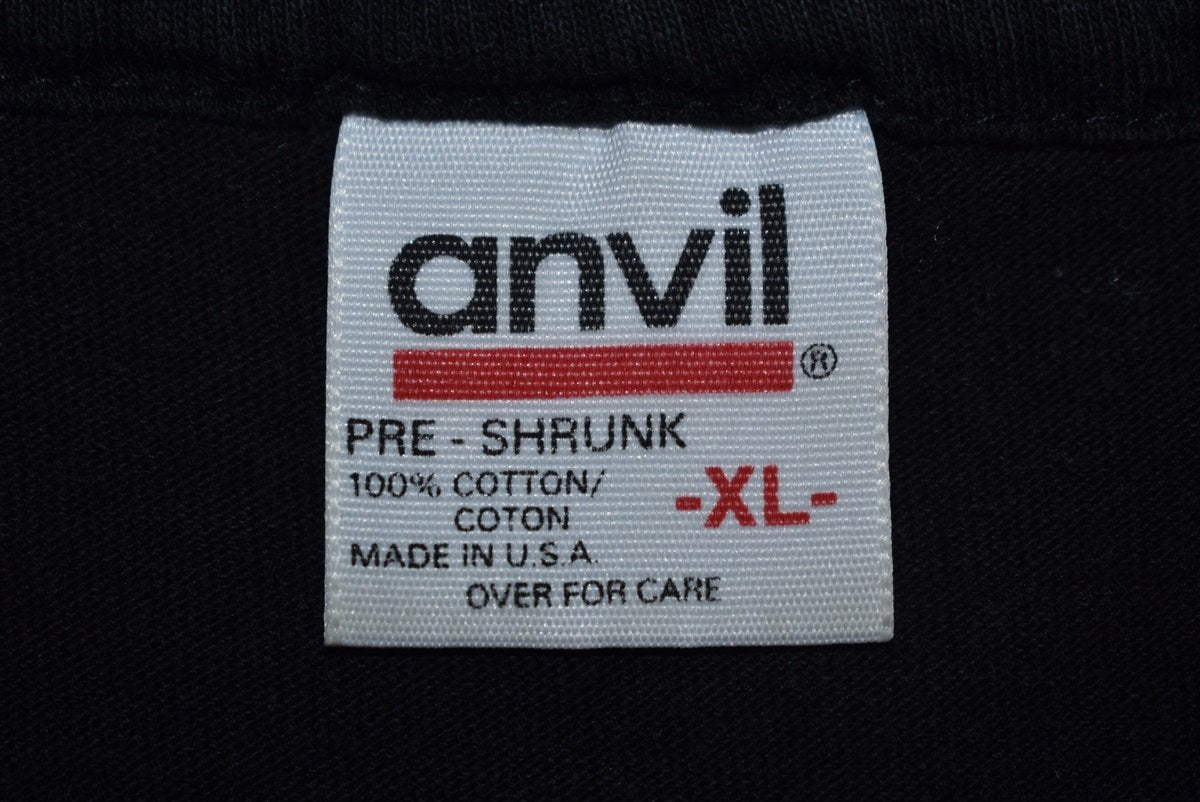 This vintage tee perfectly captures those wild, primitive vibes with wolf graphics. Features a classic 90s era Anvil tag, a hundred percent cotton, and loads of nature and animal imagery. The scene is set in the snowy woods, where wolves roam snow covered forests lit by a glowing full moon. In the USA, wolves are often found in places like Alaska, Wyoming, Montana, and Idaho.