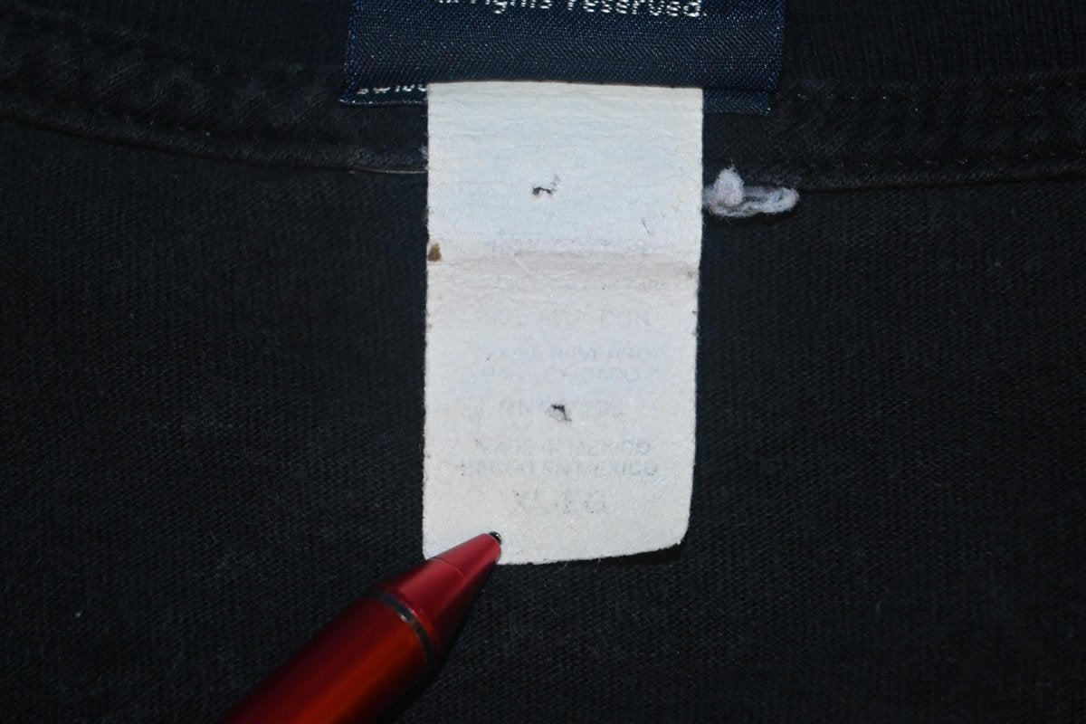 Fits like a modern unisex adult Extra Large. There is a small hole on the front, see pics.