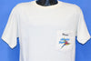 Fits like a modern unisex adult medium, this shirt is off white in color. Larger graphic on back.