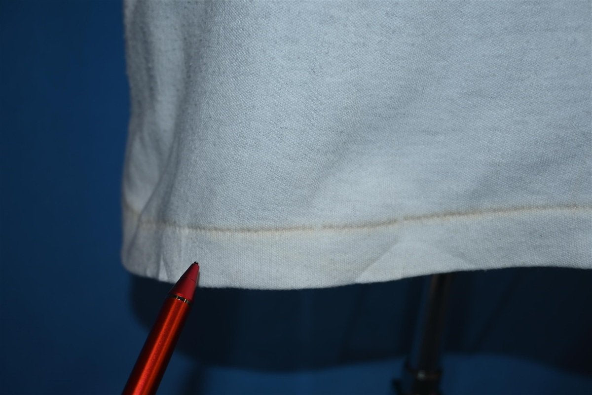 Fits like a modern unisex adult medium. There's some discoloration along the bottom seam, see pics.