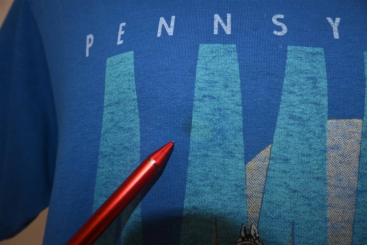 Fits like a modern unisex adult medium. Some paint spots on the front, see pics.