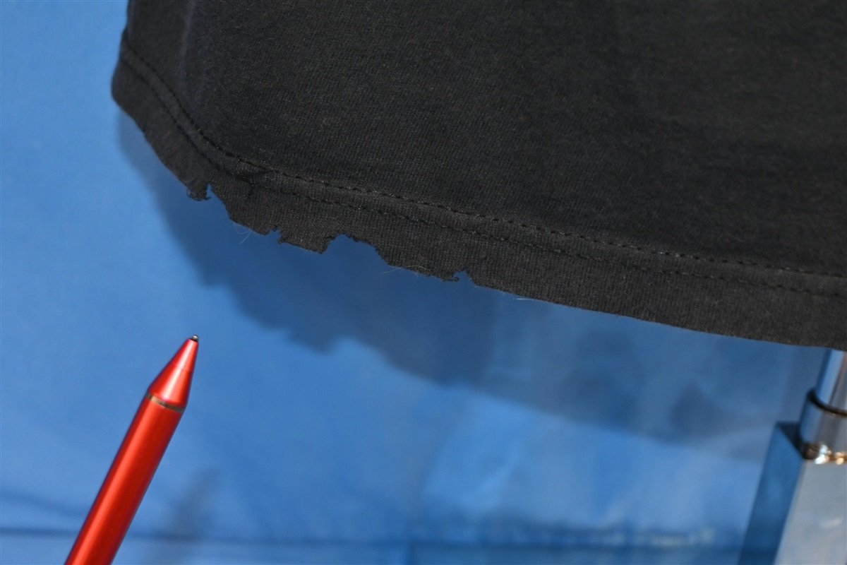 Fits like a modern unisex adult medium. There is a repair on the back, and some wear along the bottom hem on the back, see pics.