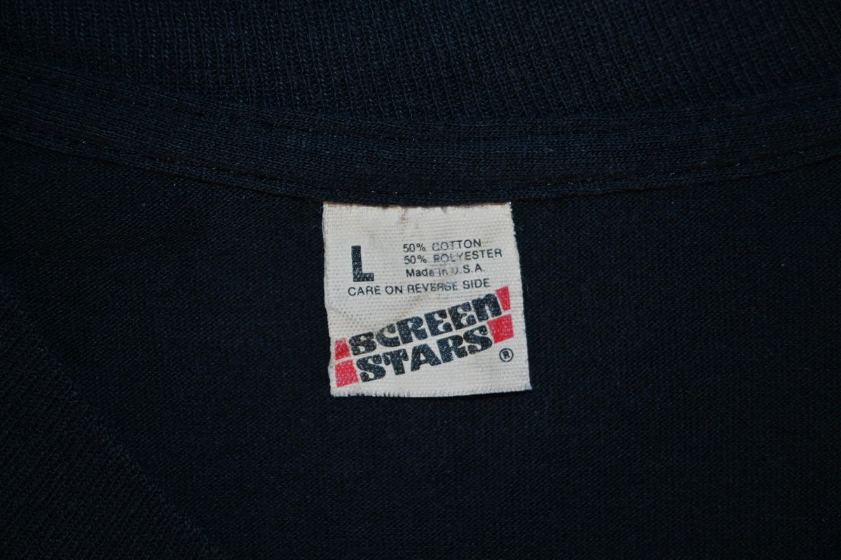 This awesome tee is an original Misfits shirt from the 1980s. This shirt features the band's infamous logo the Crimson Ghost, which was inspired by a 1946 film serial. The Misfits weren't active for the majority of the 1980s, but it was during this decade that they gained a significant following thanks to reissued and previously unreleased material.