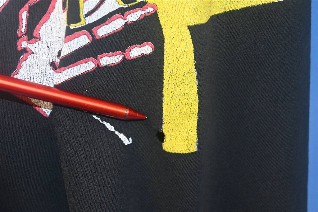 While "Horror Business" was the band's third single, released during their early days when Glenn Danzig was still on lead vocals, this shirt hails from the late 90s. It was in 1983, that the Misfits broke up and Danzig went on to form two new bands: Samhain, and then later Danzig. As the singer found fame with his new eponymous group, fans began taking an interest in his past work, which prompted him to produce the compilation album Legacy of Brutality. The record contained reissued and previously unreleased Misfits songs, and introduced the band to a new audience of punks.