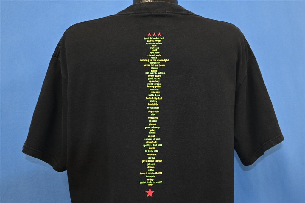 This awesome double sided concert tee is for the popular alternative rock band the Smashing Pumpkins, and it was made in 1994, after the group released their platinum-selling second album, Siamese Dream. In 1991, the band had released their debut album titled Gish, and while it only had moderate commercial success, the album was pretty much universally lauded by critics. Amidst the rise of alternative rock and bands like Nirvana and Pearl Jam, The Smashing Pumpkins were poised to become the next big thing, and they essentially did just that.