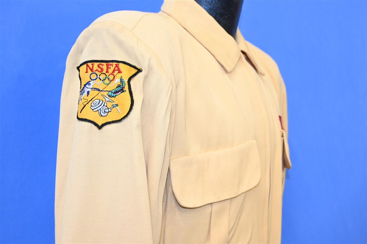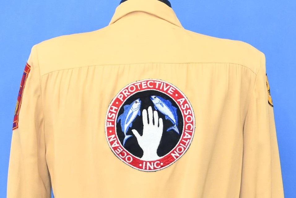 The patches on the sleeves were made for members of the National Spin Fishing Association and the South Gate Rod & Gun Club, which used to be based out of California. Meanwhile the back is decorated with a patch for the Ocean Fish Protective Association. Founded in 1949, OFPA was created to support marine conservation efforts that affected fisheries in Southern California.
