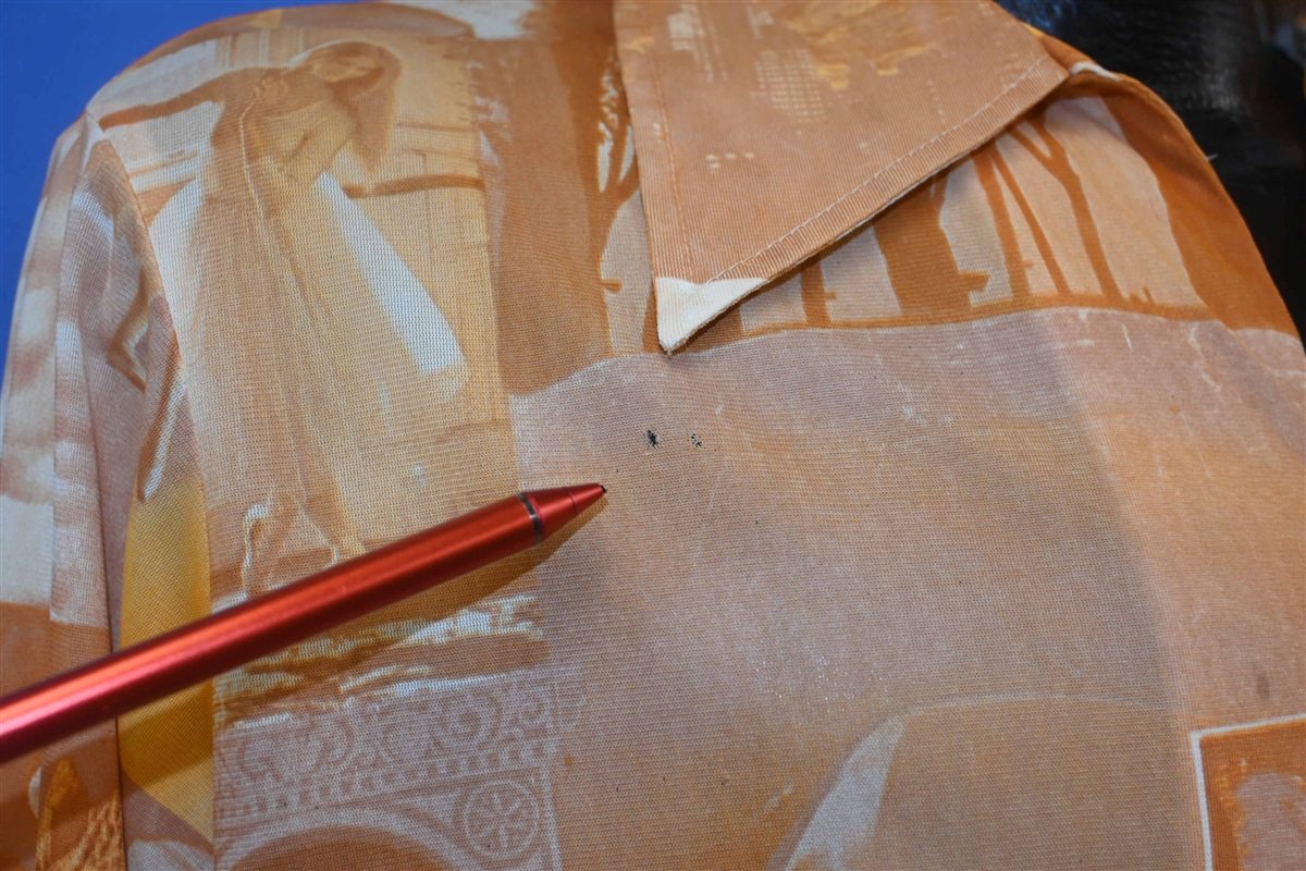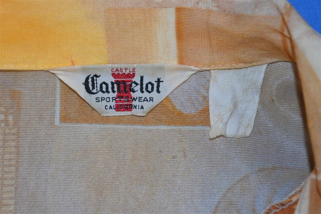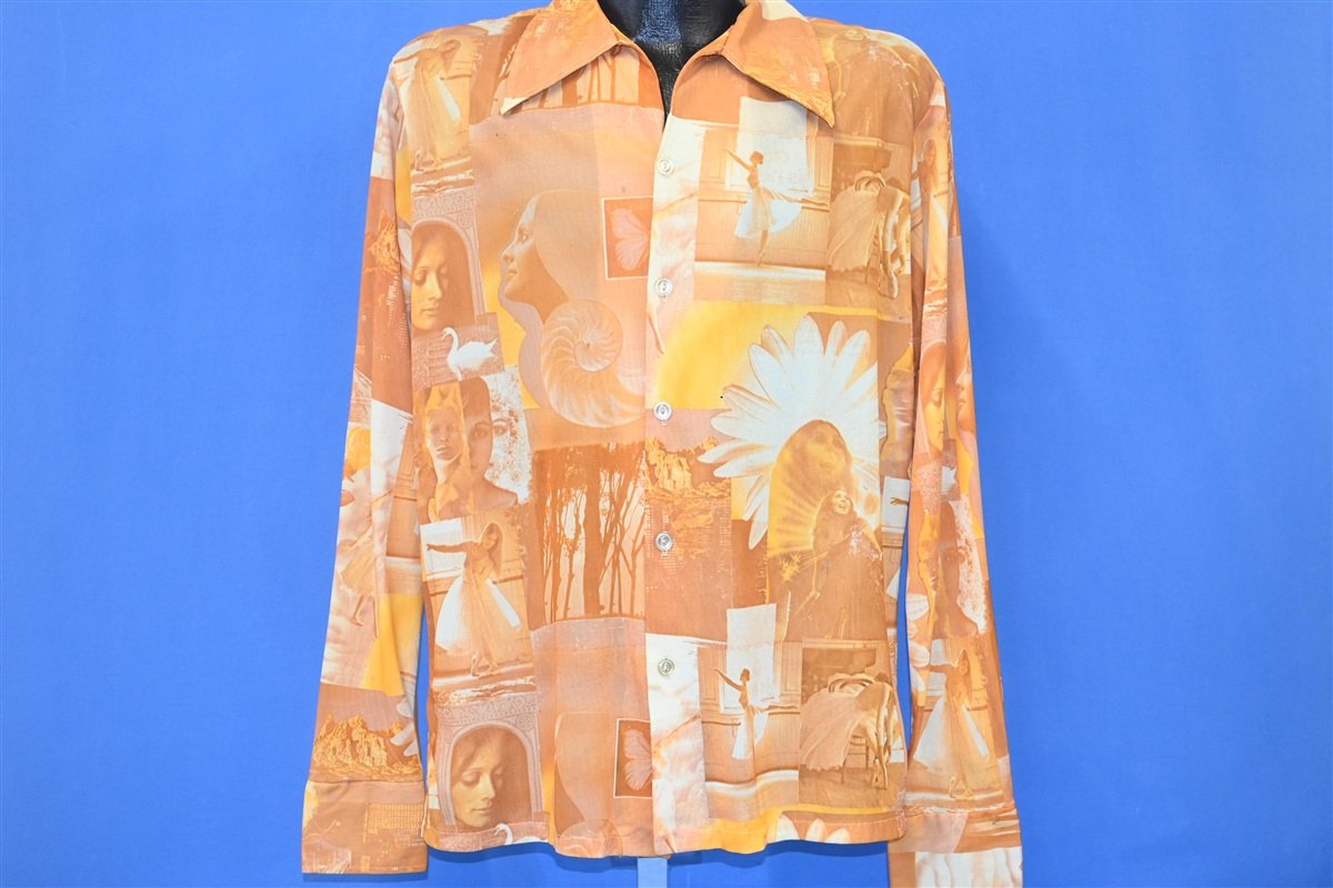 70s Camelot Photo Collage Big Collar Disco Shirt Large