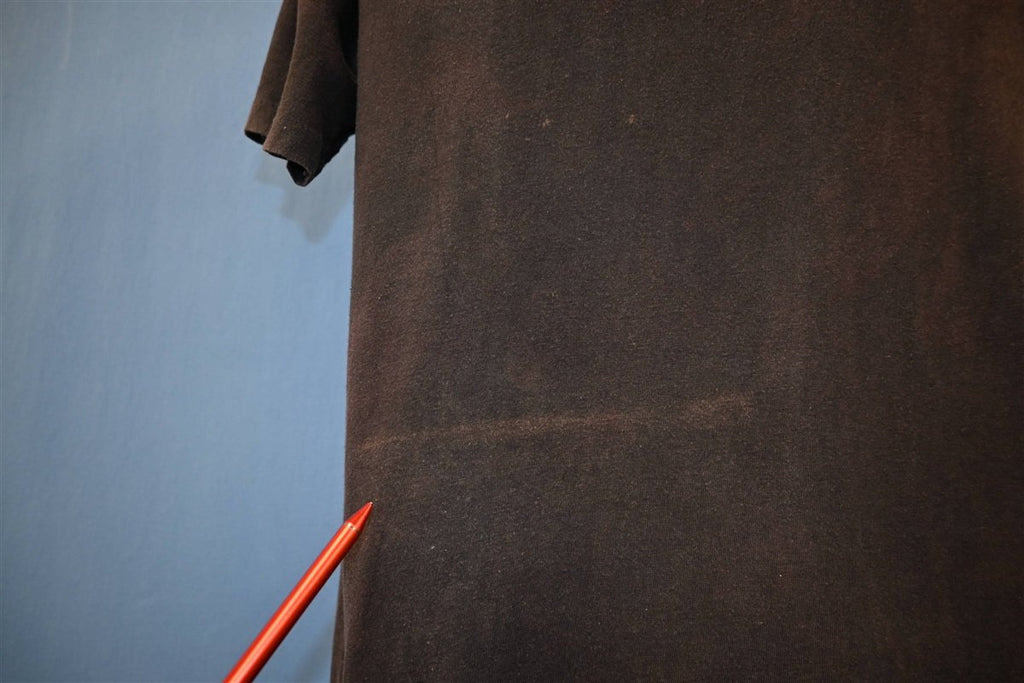 Fits like a modern unisex adult XXL or 2XL. The print is beginning to peel and there's light fading throughout, see pics.