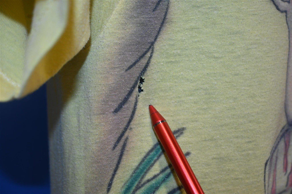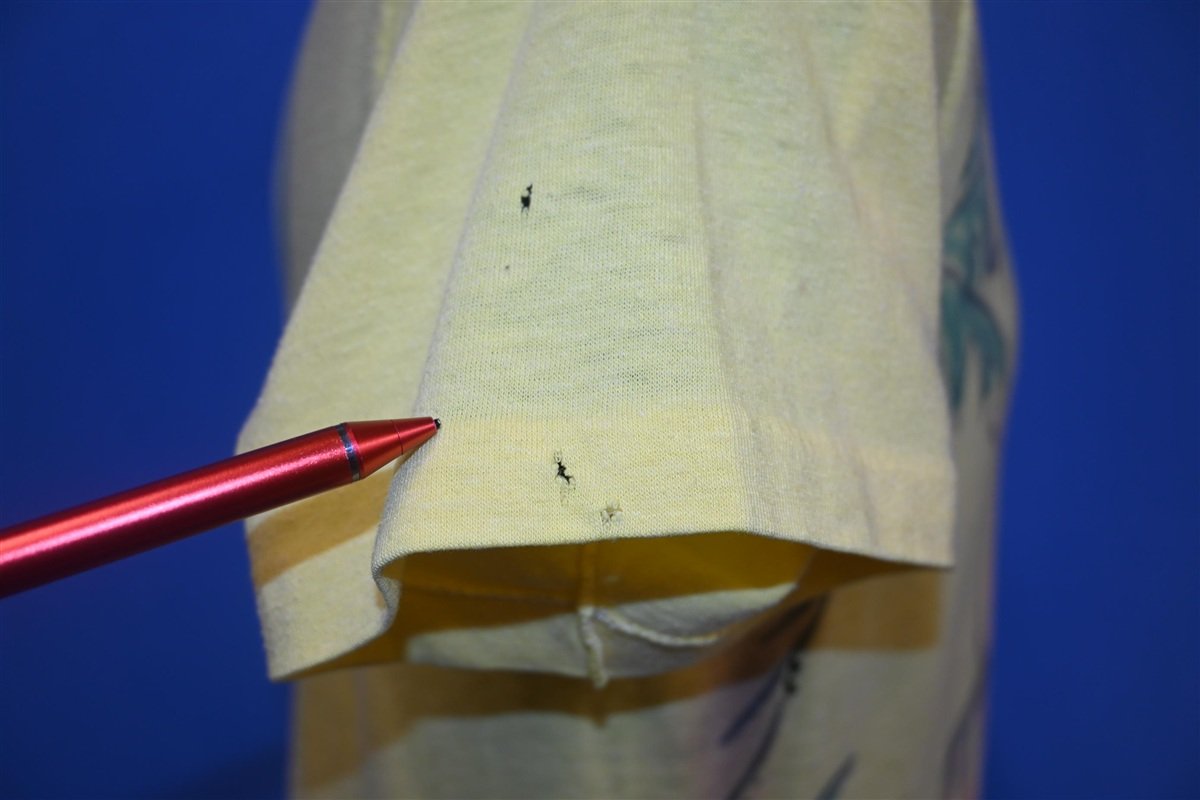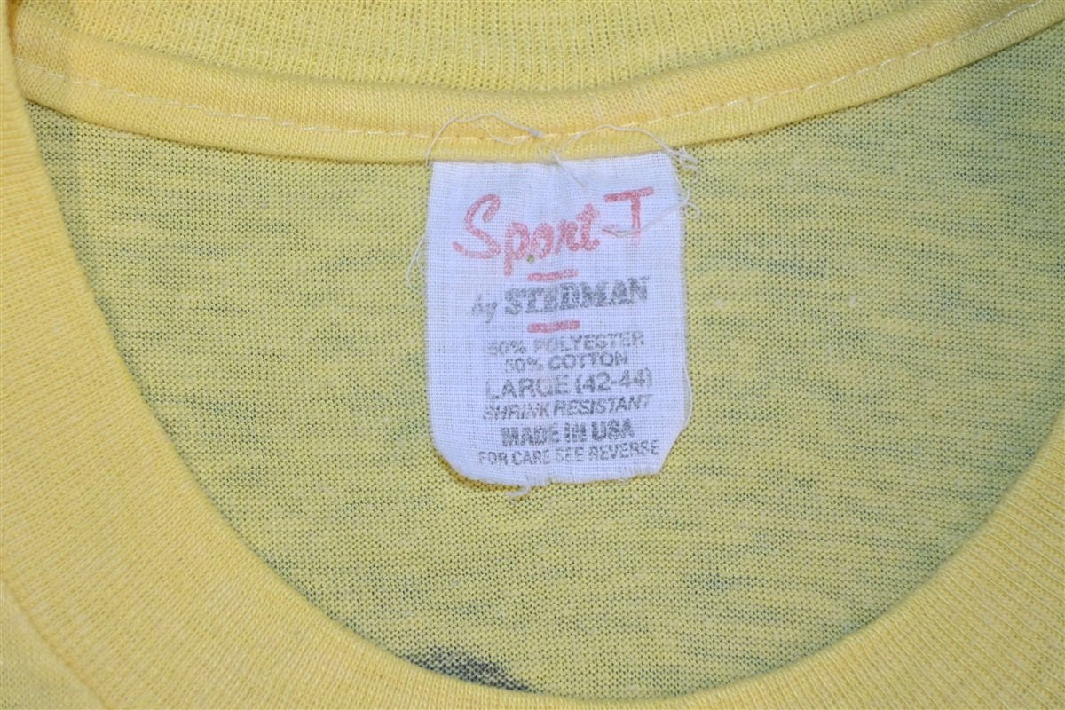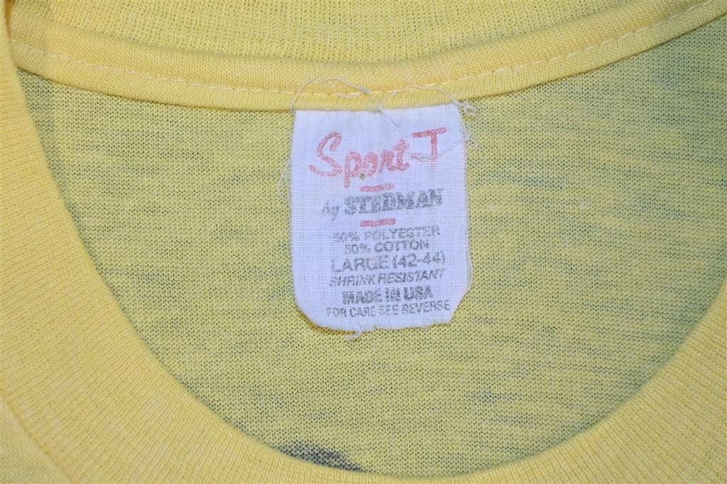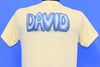 This sweet vintage tee was custom made in the 80s. It's decorated with airbrushed graphics of a surfer, the words "Poor Ole Fella" and the name David on the back. This shirt looks like a classic seaside souvenir from a boardwalk t-shirt stand. As airbrush art took off in the 70s and 80s, the airbrushed tee became a staple of county fairs, malls, and boardwalks. Airbrush art allowed people to buy one-of-a-kind apparel that could be customized in a matter of minutes.