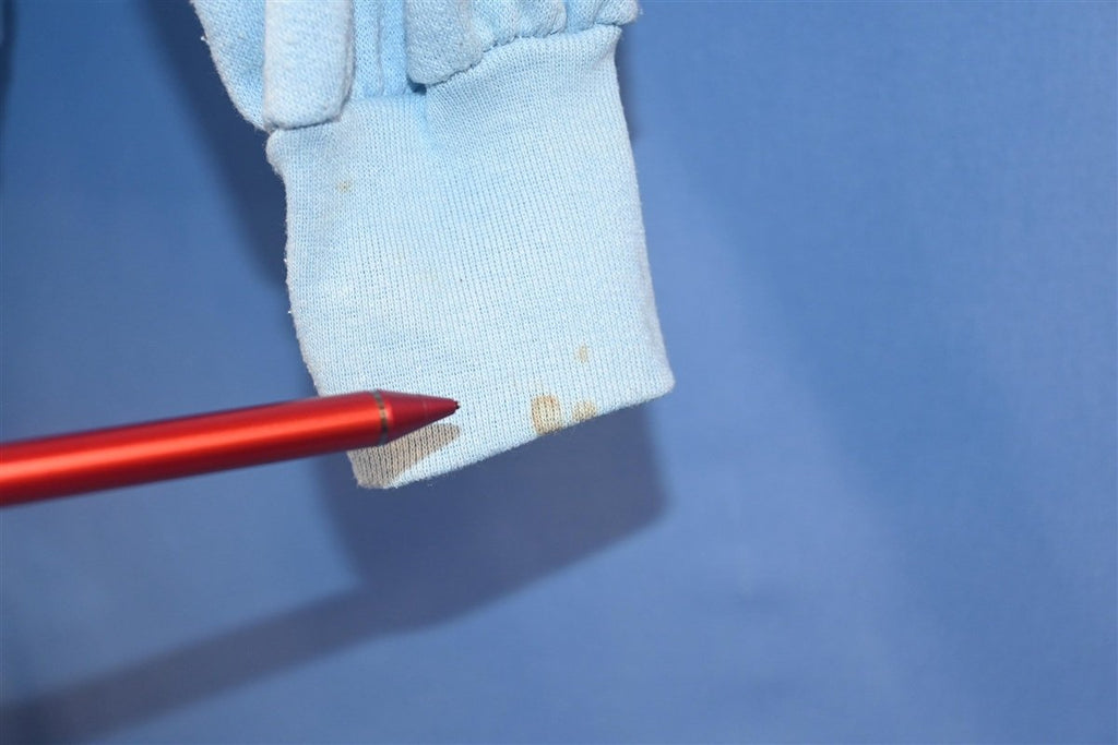 Fits like a modern unisex adult medium. There are some spots, see pics. This shirt is very soft on the inside.