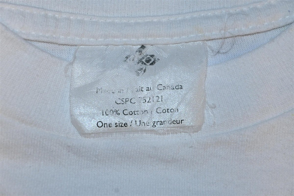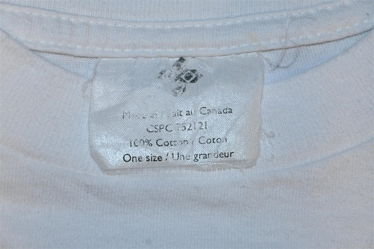 This vintage shirt bears an encouraging message from the Liquor Control Board of Ontario or LCBO. The board was established in 1927 alongside the end of prohibition in Ontario, but for many decades it held a quasi-monopoly over alcohol sales in the Canadian province. This tee promotes responsible drinking with the message, "you don't have 2 fill it up 2 live it up".