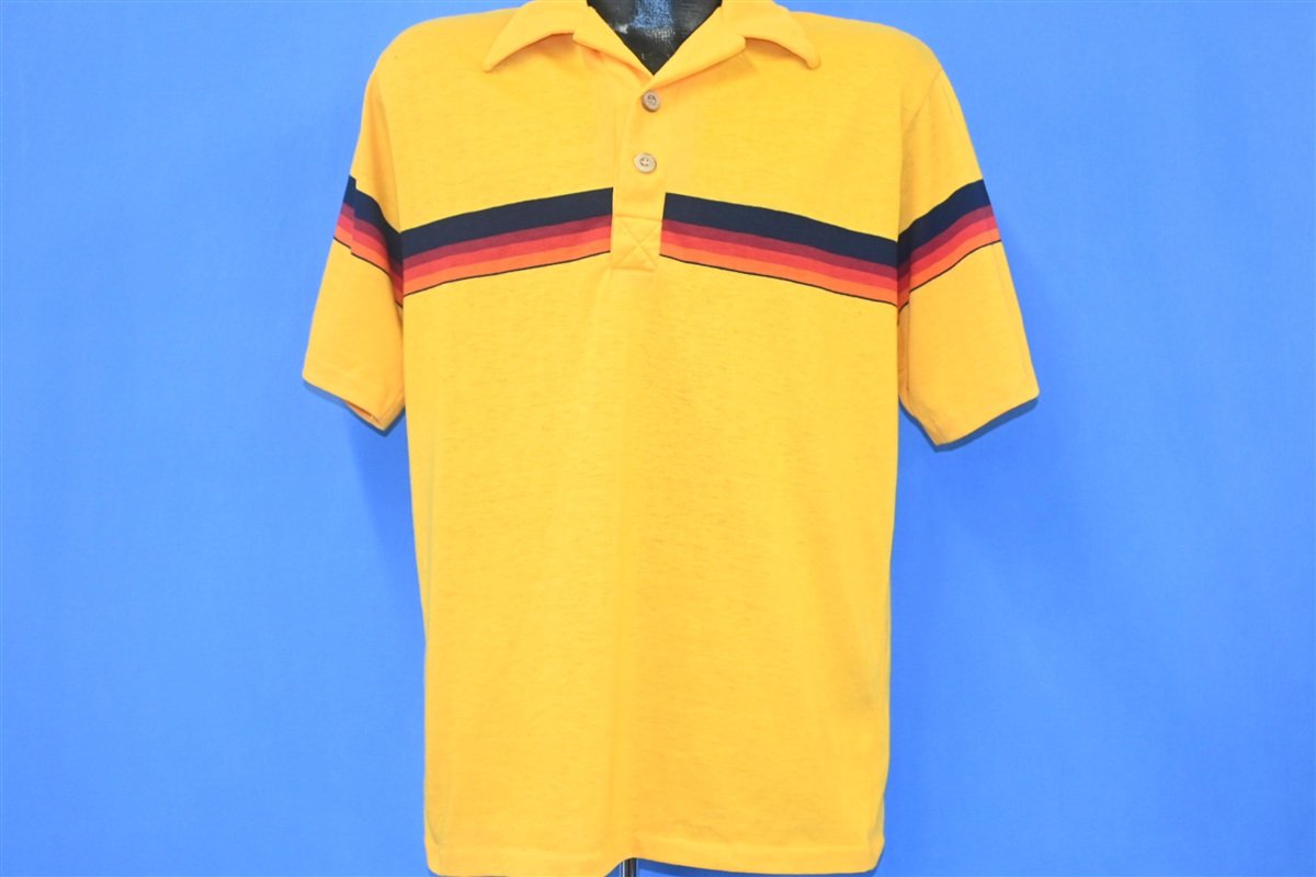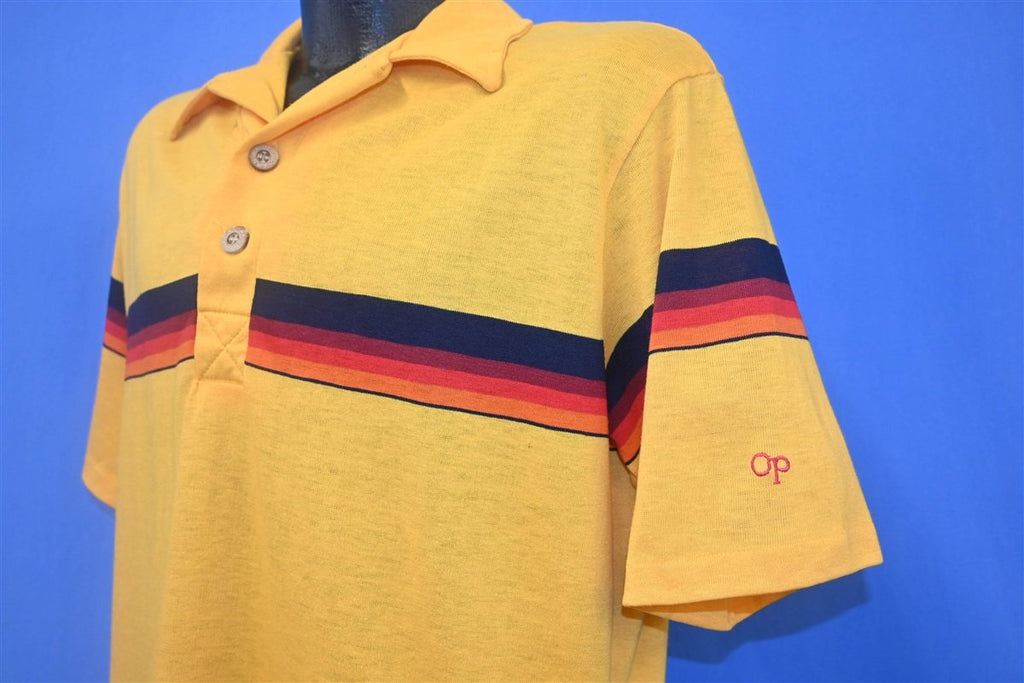 70s Ocean Pacific OP Yellow Striped Surf Polo Shirt Large