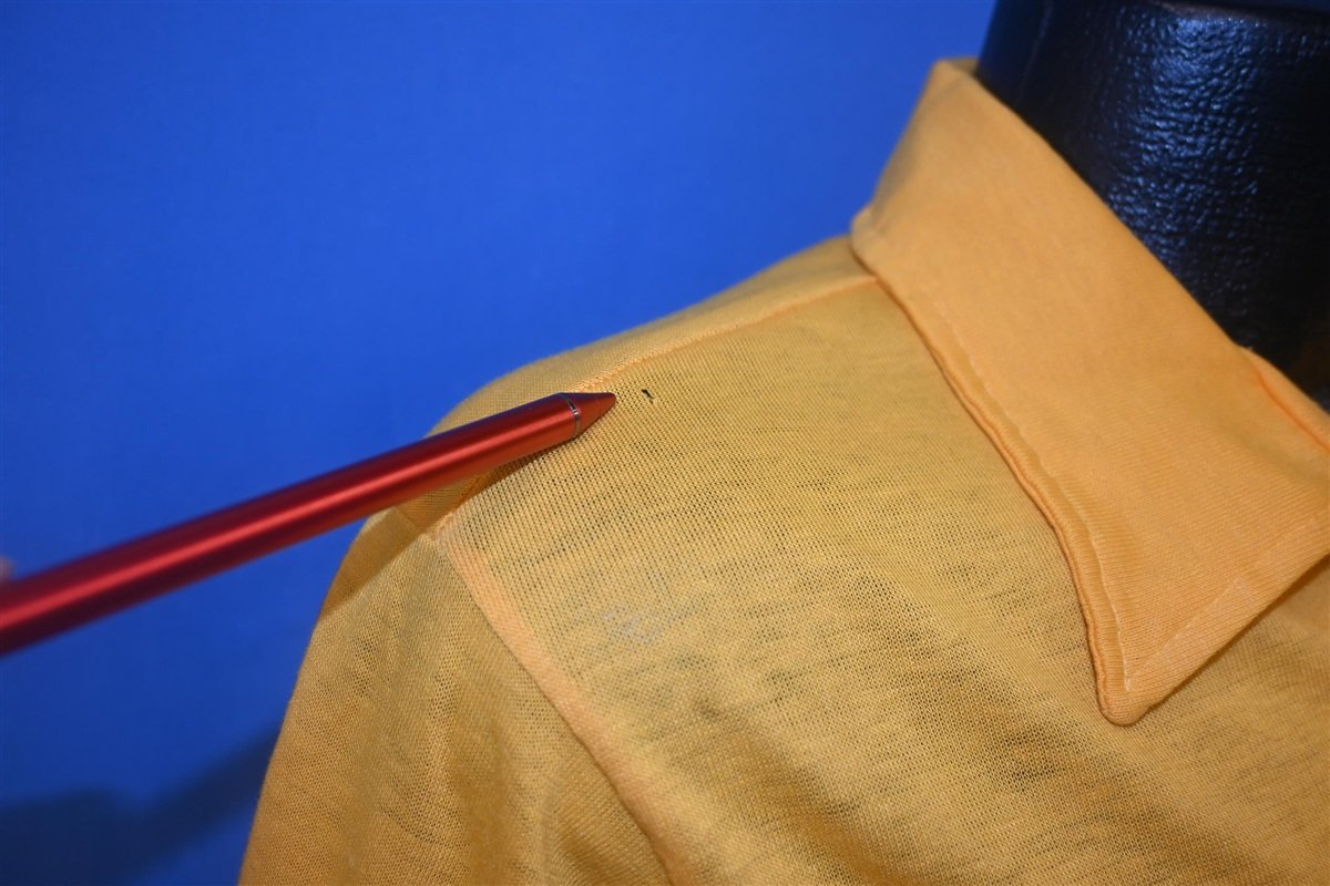 This sweet vintage polo was made by the seminal surf apparel brand, Ocean Pacific. The shirt comes in a bold bright yellow with horizontal stripes across the chest and sleeves, and it has the signature OP logo embroidered onto the sleeve. This shirt also includes a big style collar and wooden buttons to give it that classic 70s surf look.
