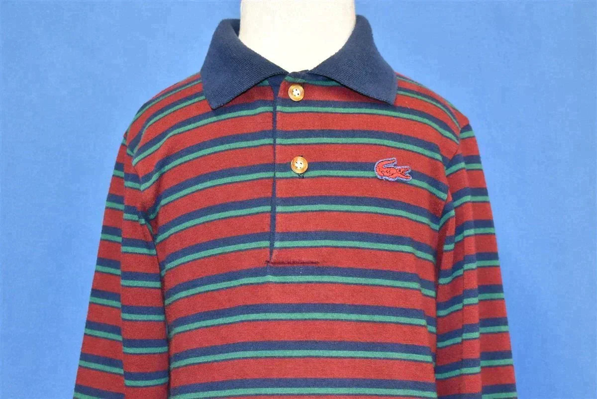 80s Izod Lacoste Maroon Striped Polo Shirt Youth Small