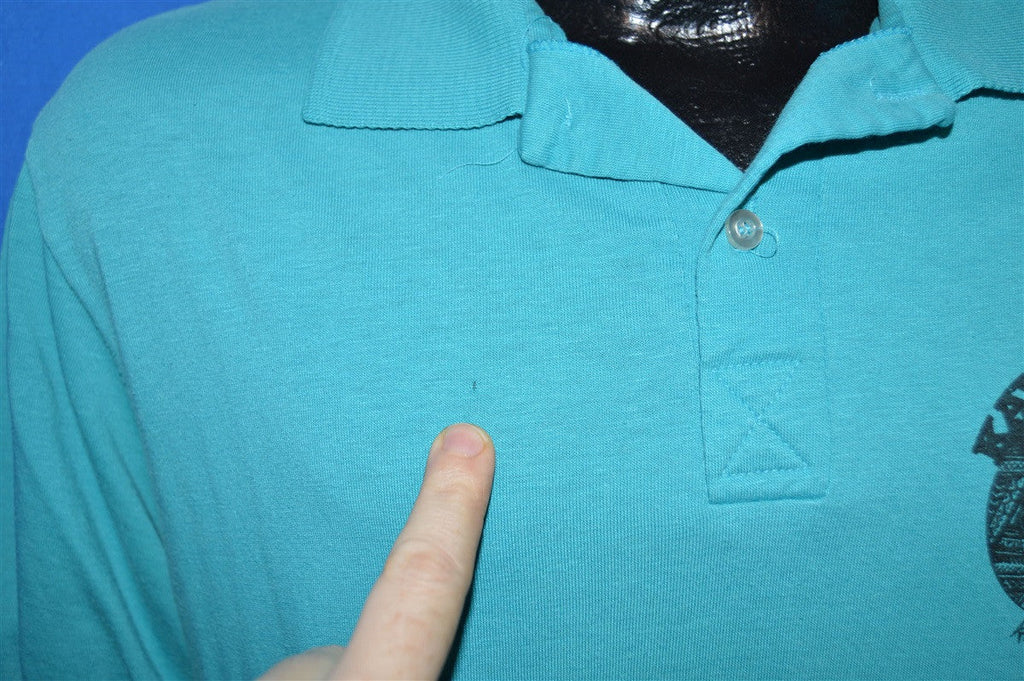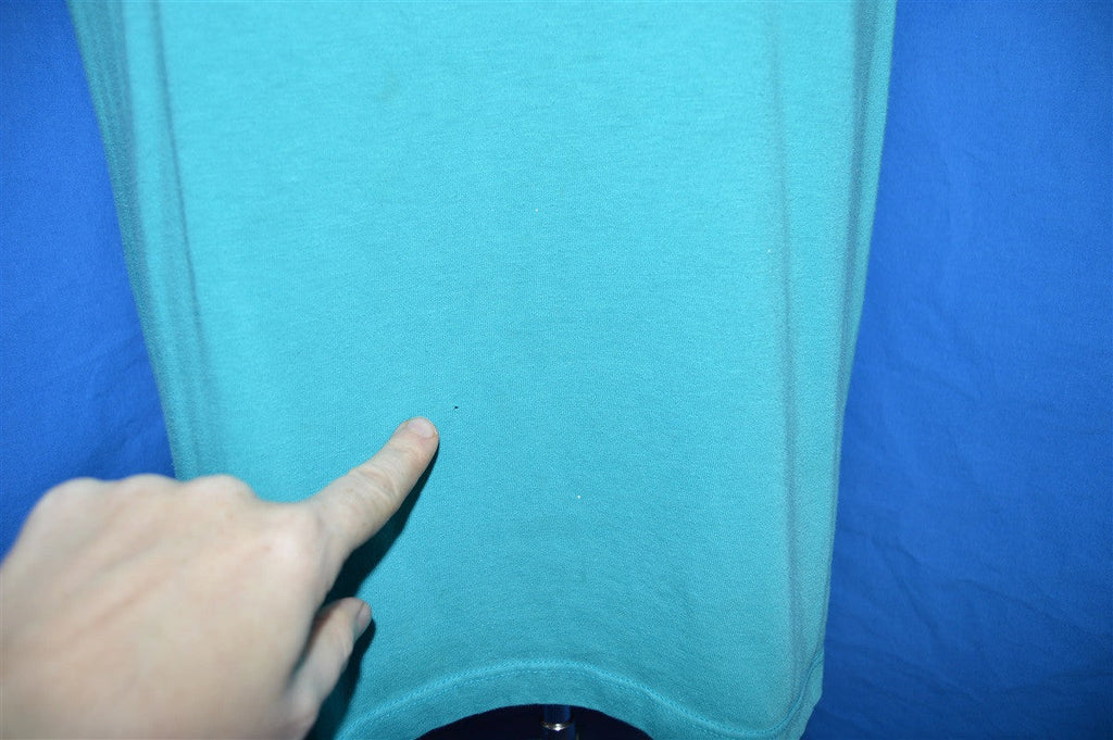 This shirt has light spot on front, small pinholes and is an Adult Large.