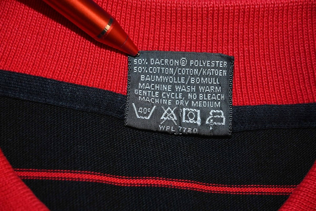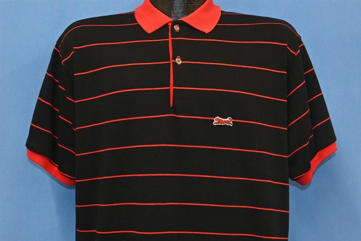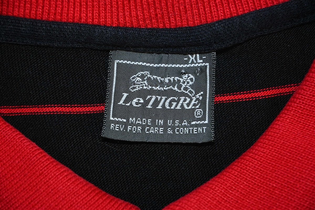 80s Le Tigre Tiger Logo Black Red Striped Polo Shirt Large