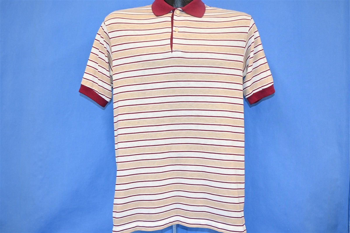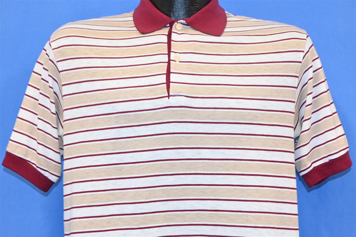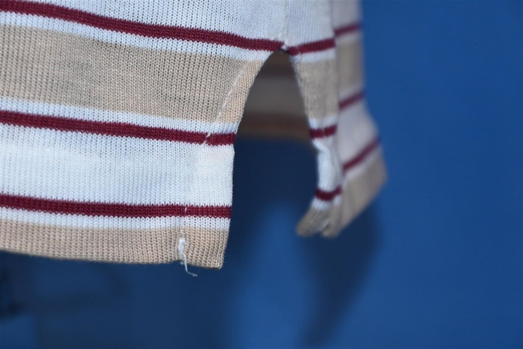 80s Oakton Ltd. Red Beige White Striped Polo Shirt Large