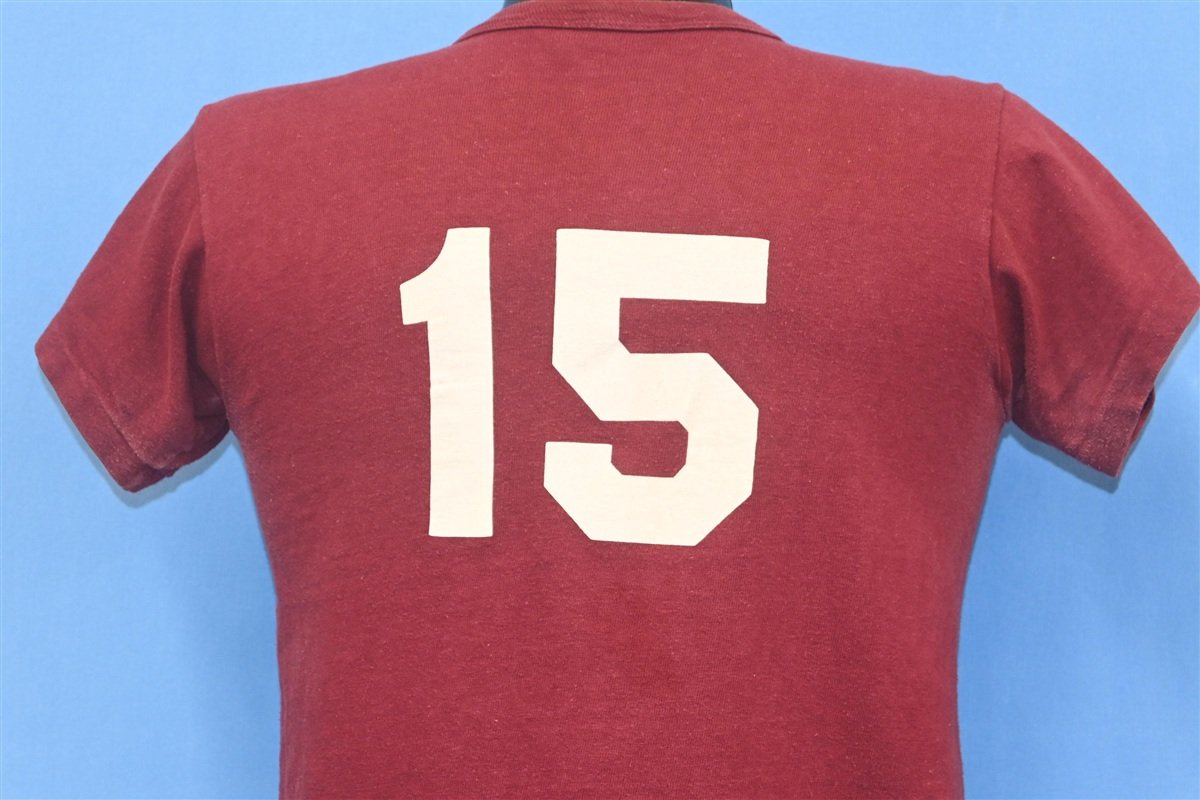 This cool tee is a vintage soccer uniform for the DC Recreation Department. It's safe to assume that this shirt is referring to the parks and recreation department in Washington DC, which offers different amateur sports and activities for various age groups. This shirt comes in a gorgeous shade of maroon with the number 15 on the back.