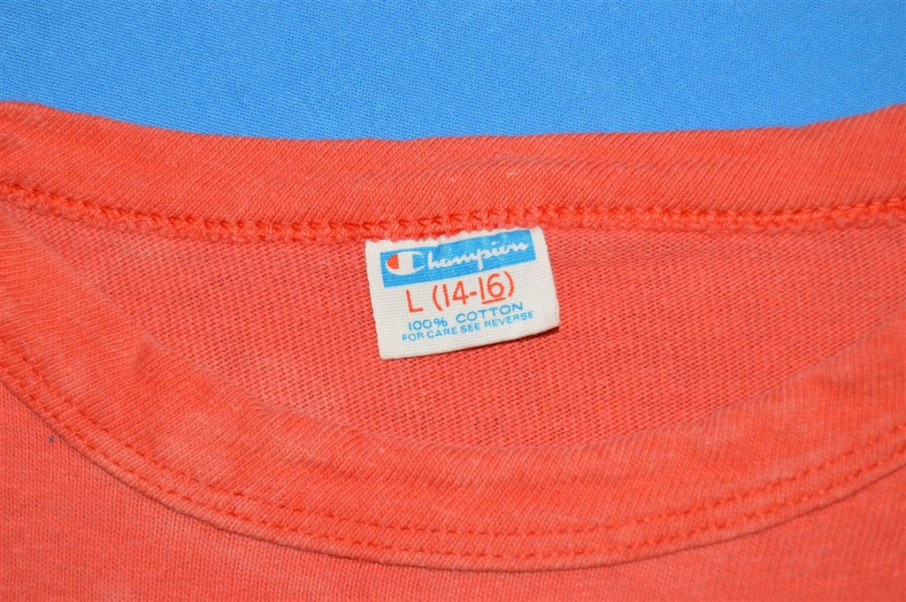Tag says youth larger 14-16, but this shirt fits like a modern unisex youth medium 10-12.