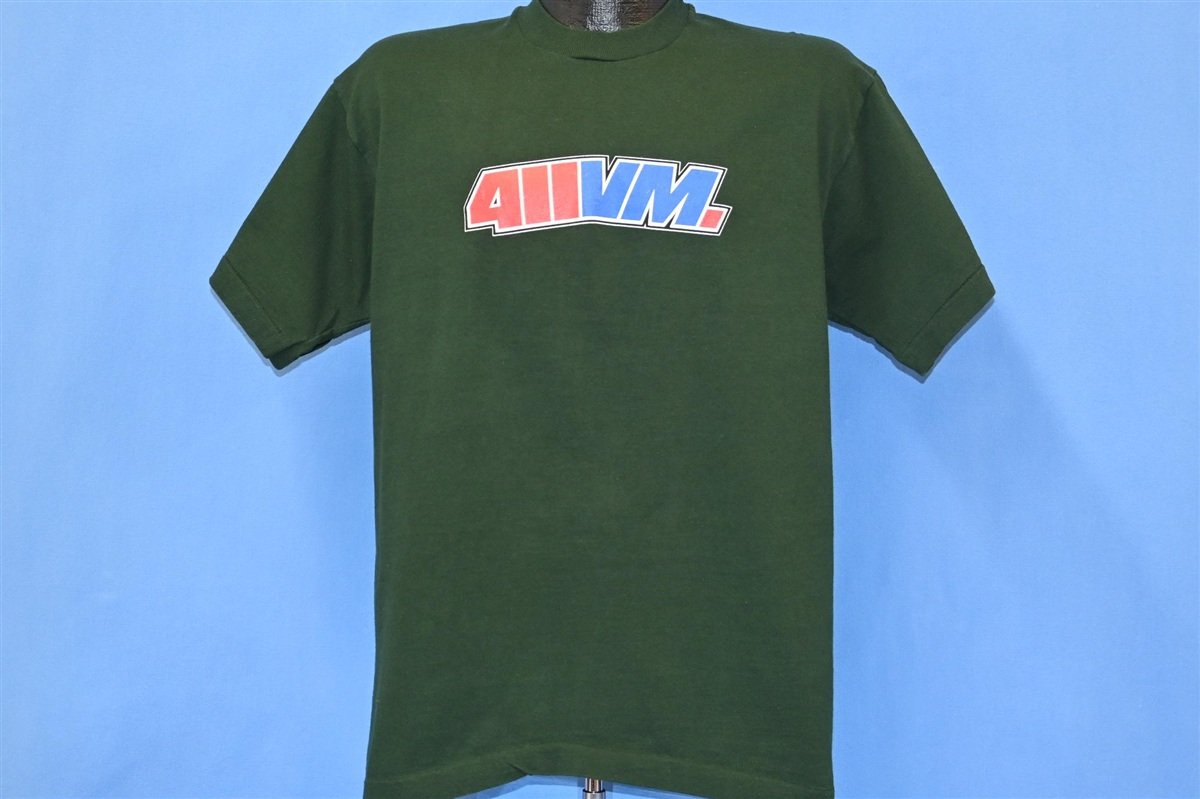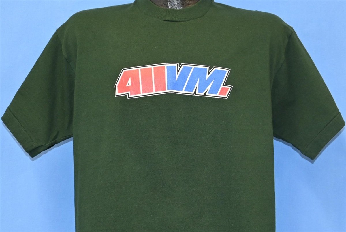 This cool vintage skate tee bears the logo for 411VM or 411 Video Magazine. Founded in 1993 by Josh Friedberg and Steve Douglas, 411 helped to revolutionize skateboard videos in the 90s. While many credit Powell Peralta with jump starting the skate video genre, most professional skateboard footage was limited to only occasional major video releases. Skate videos became an essential part of the community, as they were often the best way for skaters to demonstrate and share new tricks, but this was complicated by their limited availability. When 411 came along, they managed to give skaters access to more professional videos than ever before. The video magazine used to release four issues a year, and they produced a total of 67 videos before the series was discontinued in 2005.