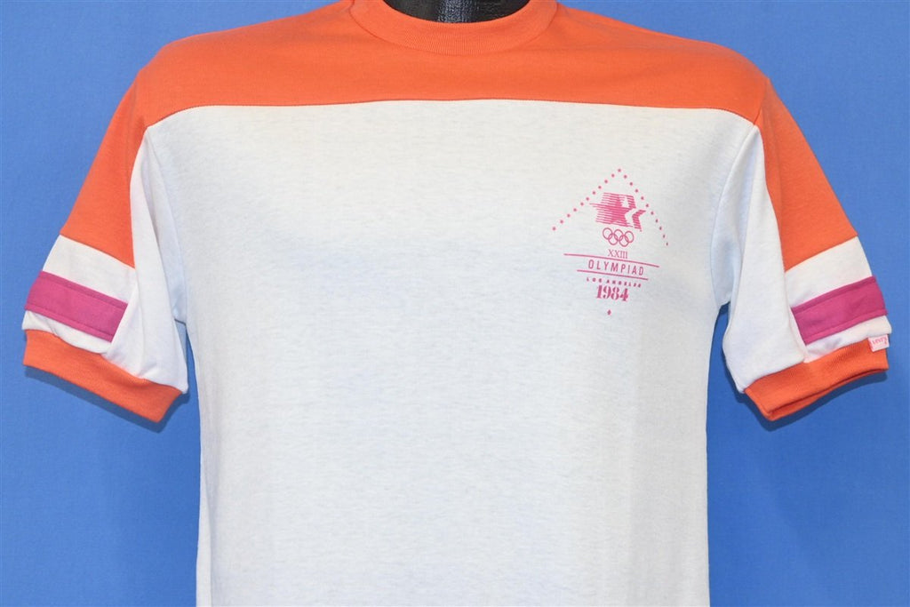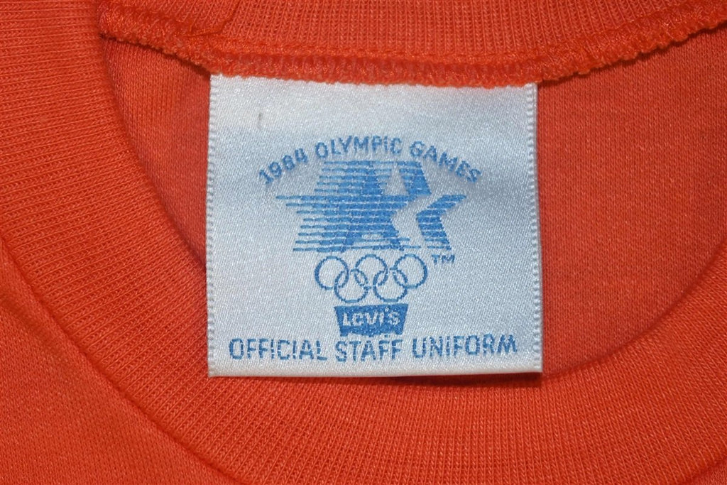 This cool colorblocked tee is an official staff uniform that was made by Levi's for the 1984 Olympic Games in Los Angeles. LA84 is fondly remembered for being one of the most financially successful modern Olympics, and the city of LA was able to cut down on costs significantly by using many of California's existing sports venues.