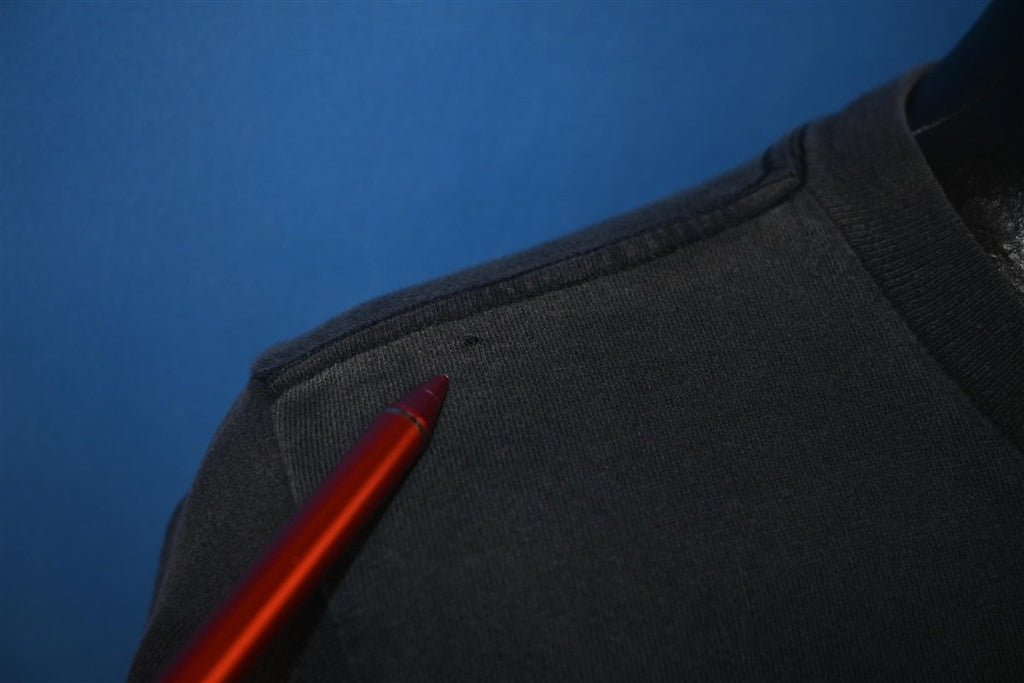 Fits like a modern unisex adult small. There is a hole on the right shoulder when wearing, see pics.