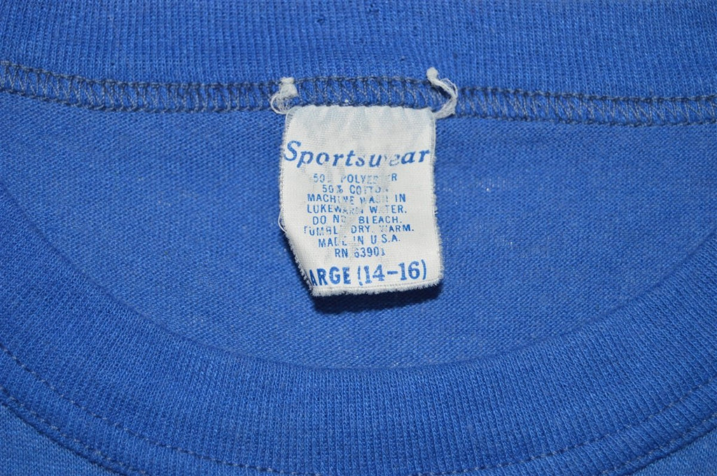 This stylish vintage t-shirt was made by Sportswear back in the 1980s. The shirt is made of a soft and comfy cotton blended material and comes in a handsome royal blue color. The shirt is completely blank without any graphics, but it would be perfect for some personalization like the addition of an iron on graphic.