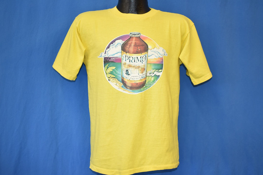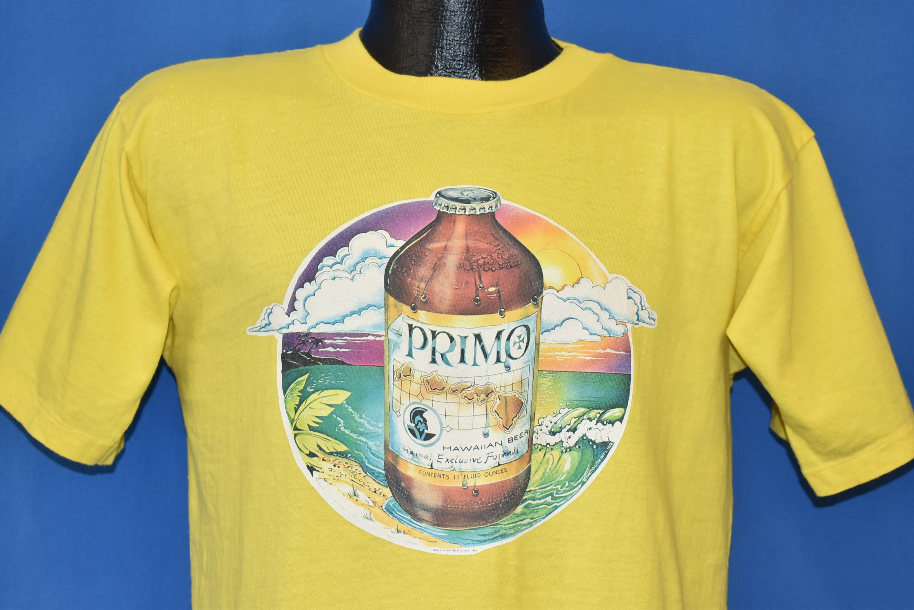 This indulgent 70s tee features the brown beer bottle of Primo, a Honolulu-based lager beer. The brewery is called "Hawaii's original beer," as they have been in operation since 1898, then called Primo Brewing & Malting Company.