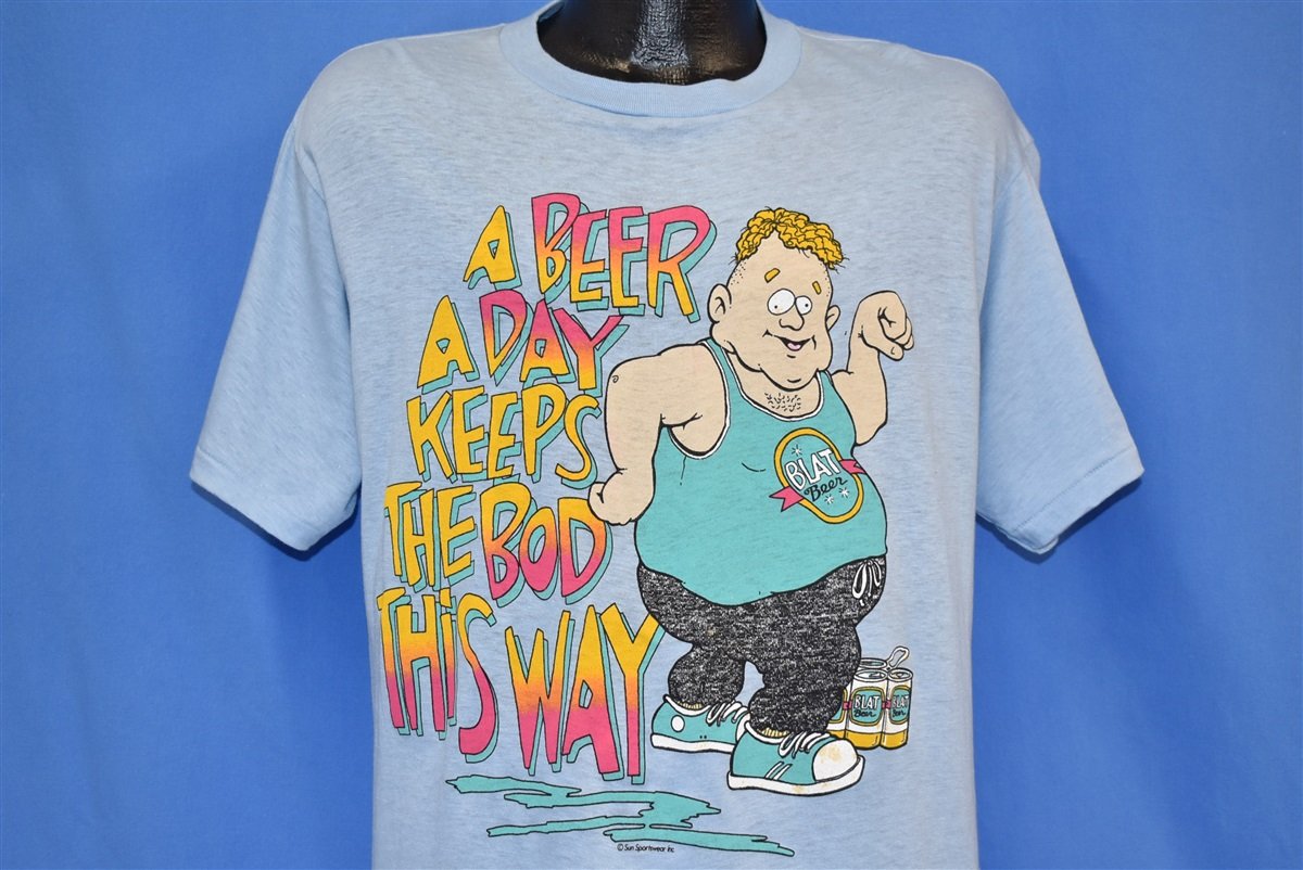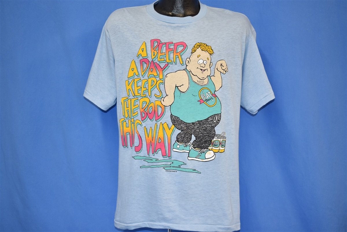 80s Beer a Day Keeps Bod This Way Funny Cartoon t-shirt Large