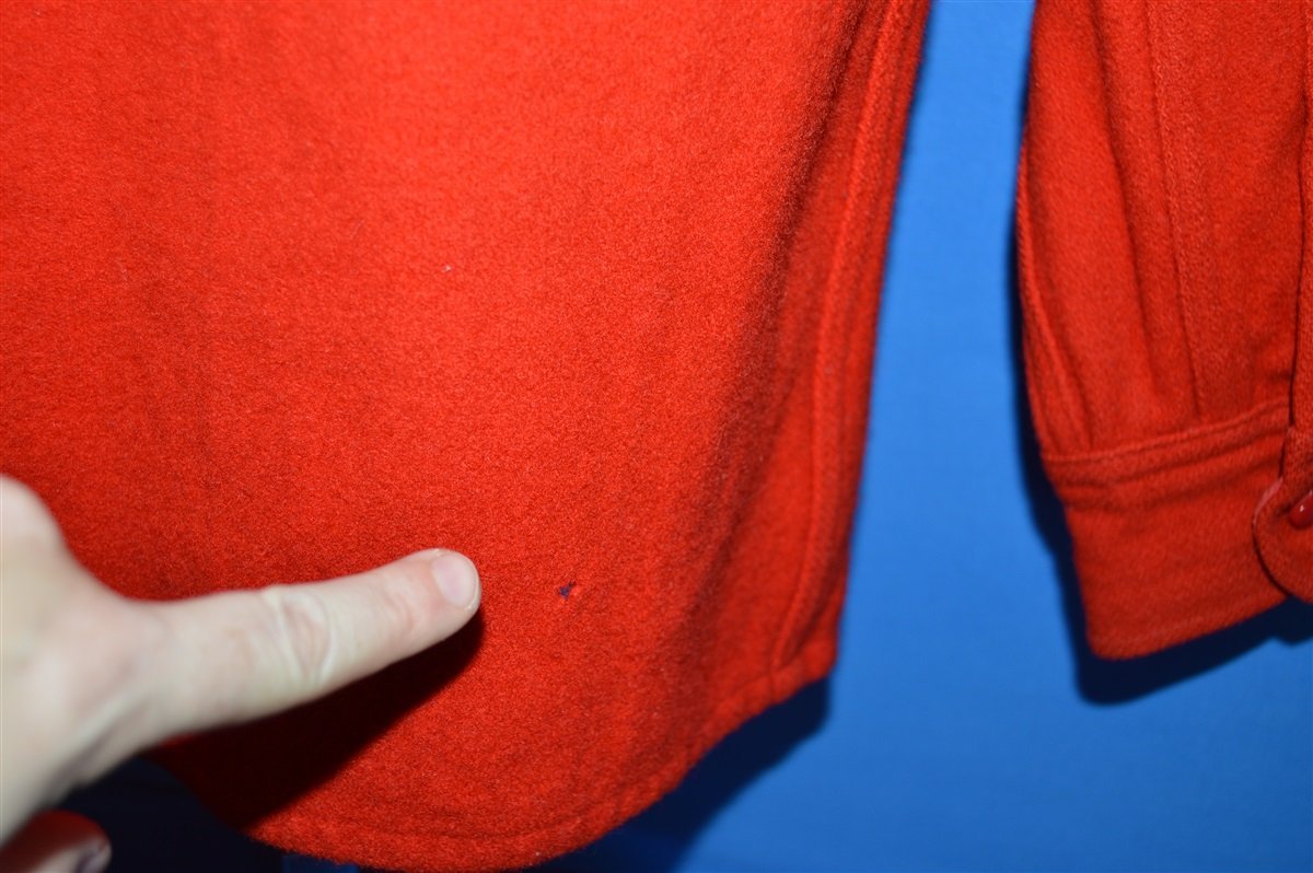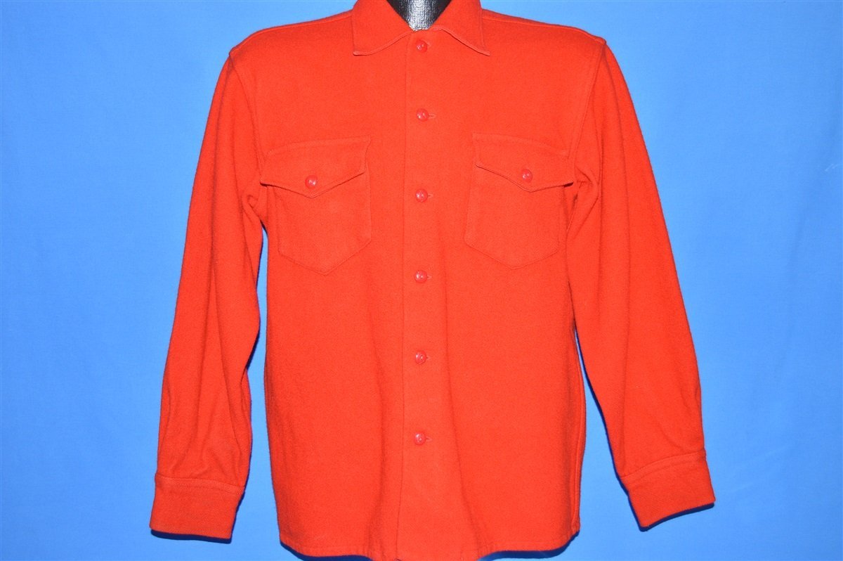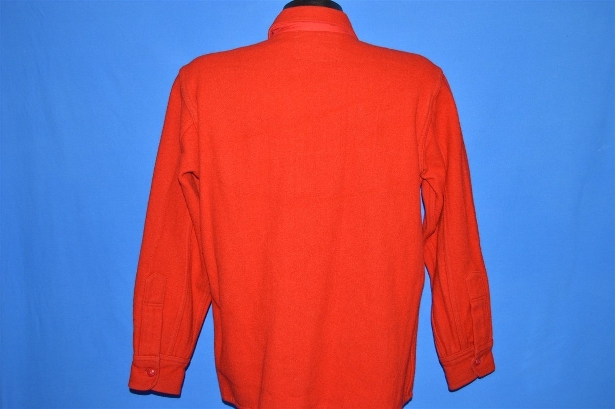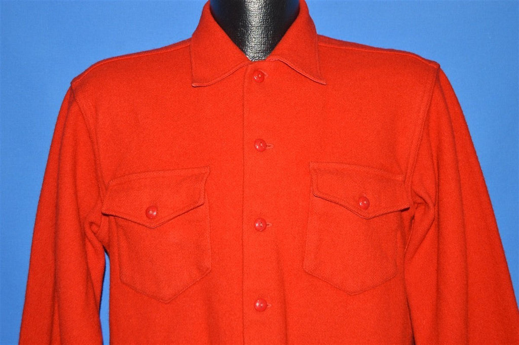 This warm heavy duty button up hunting jacket is from the 50s and made of 100% wool. It also has two button flap pockets on the front.